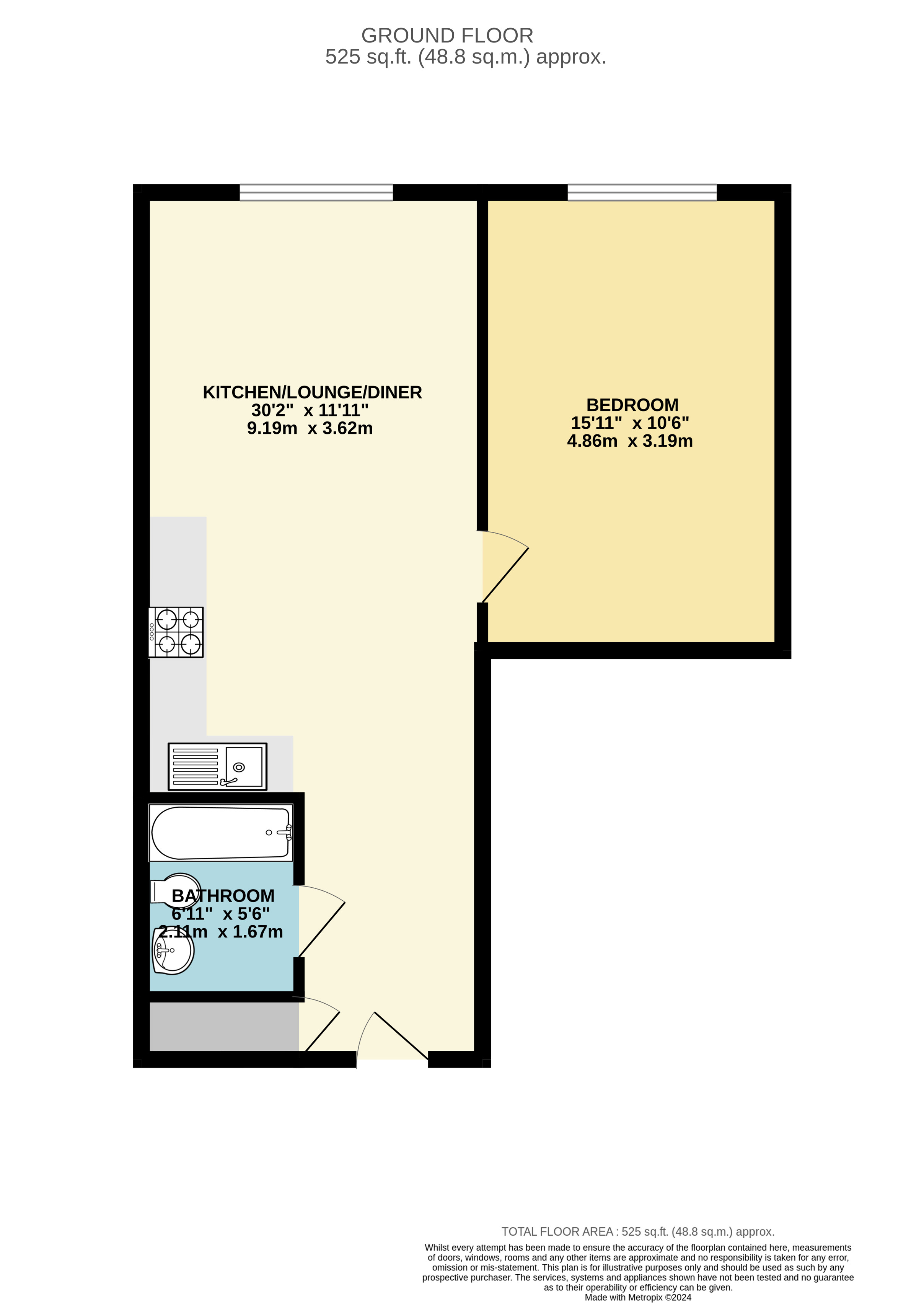 Brief internal accommodation comprises an entrance hallway, modern fitted bathroom, one double bedroom and an open planned lounge/diner/kitchen with integrated appliances. Externally, parking can be found adjacent to the property within a 1 minute walk with a cost of £25 a year.