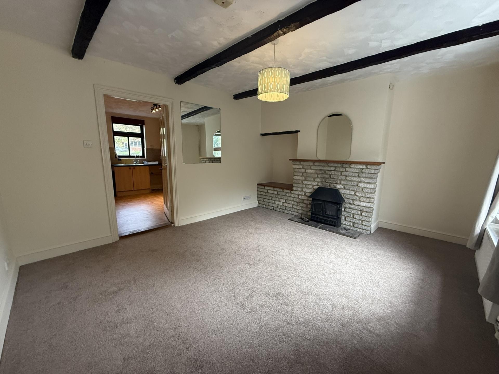 Spacious living room with brand new carpet and a working log burner ideal for cosy evenings