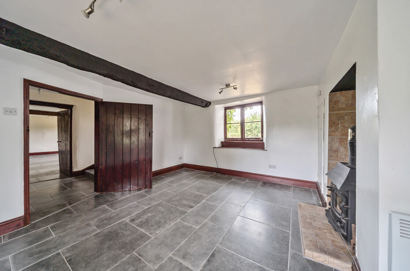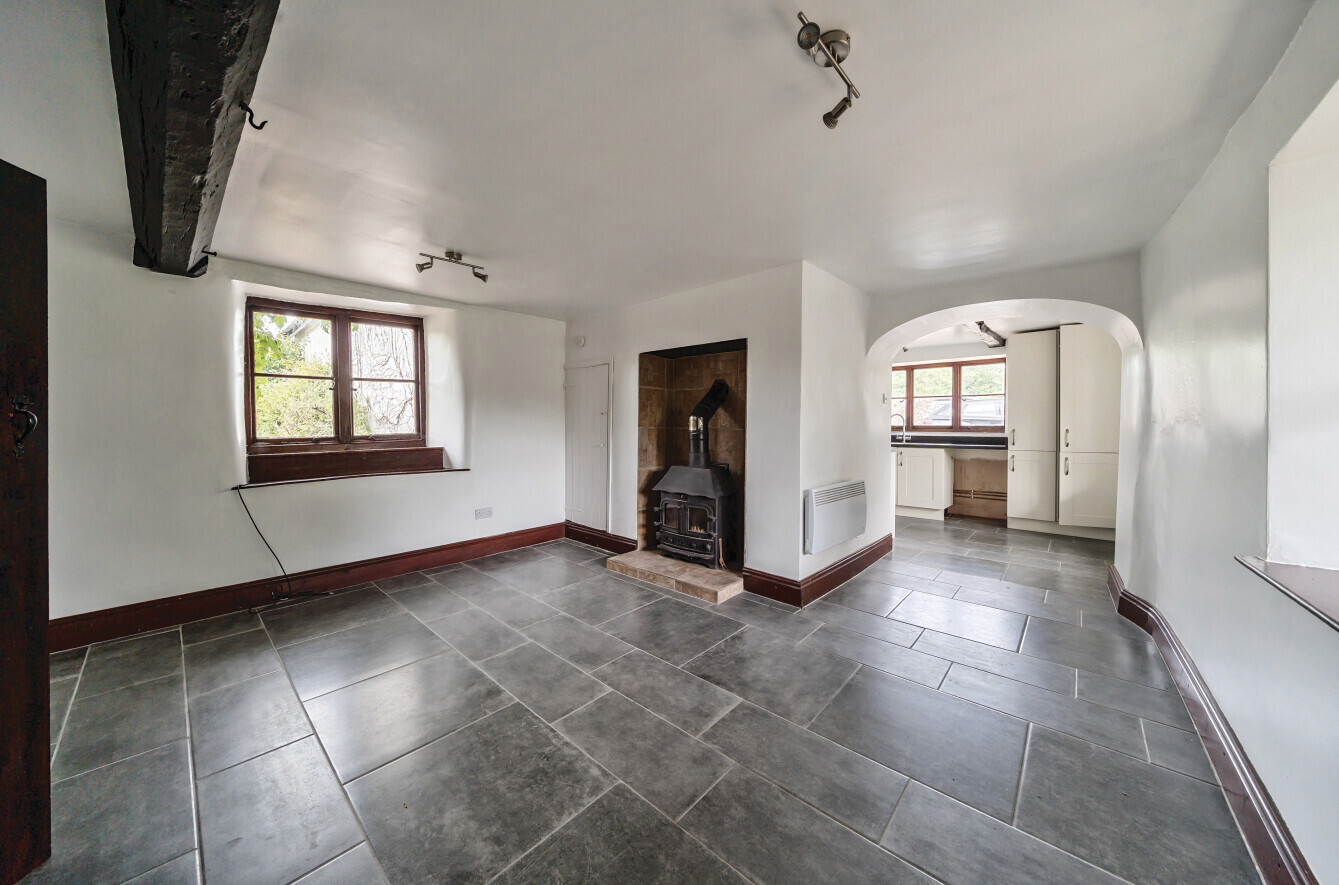 The ground floor living space of the main house offers a welcoming and flexible layout. A generous sitting room features an inglenook-style fireplace and front-facing windows, creating a warm and inviting atmosphere.