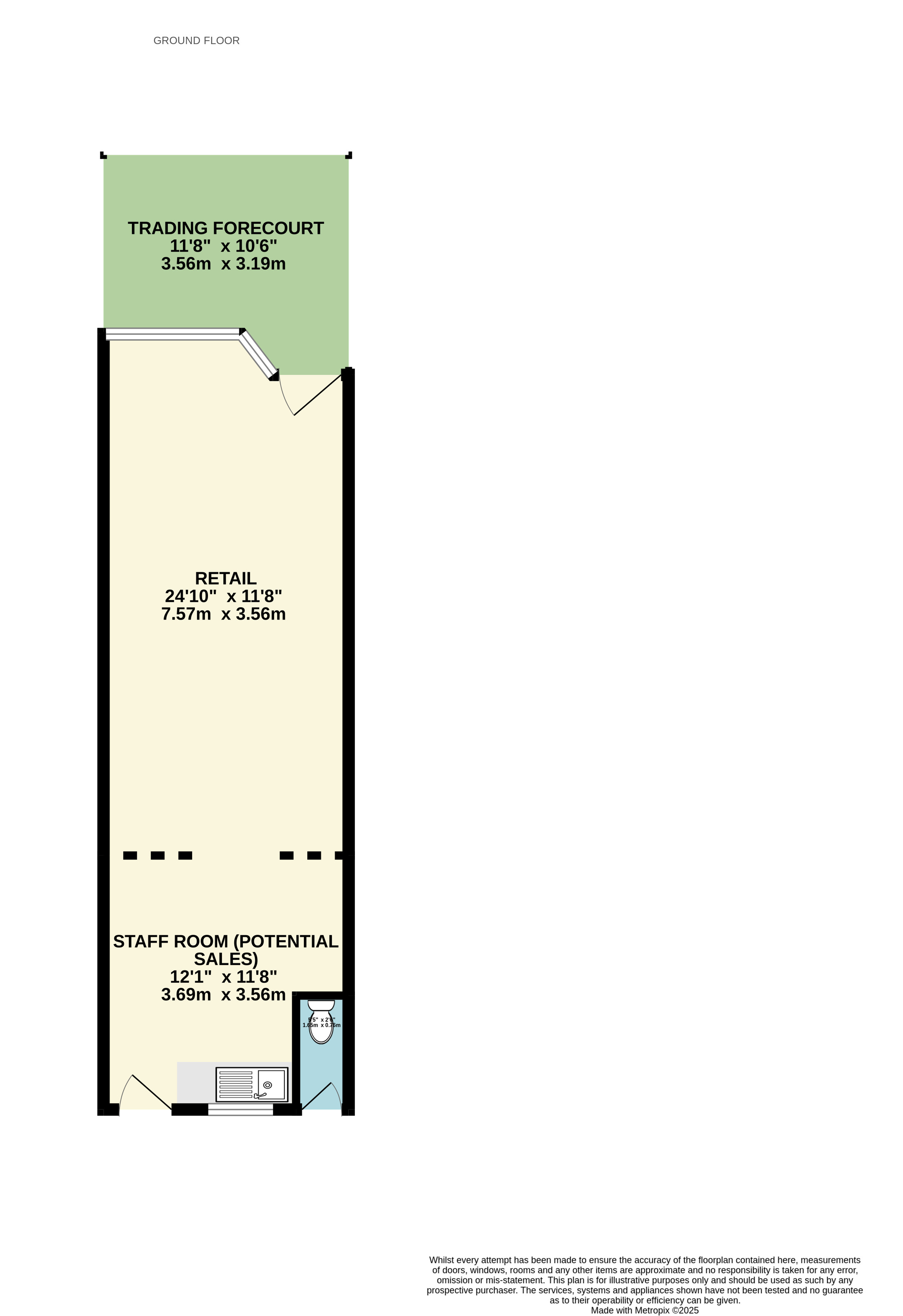 Trading forecourt 99 sq ft (9.2 sq. metres)