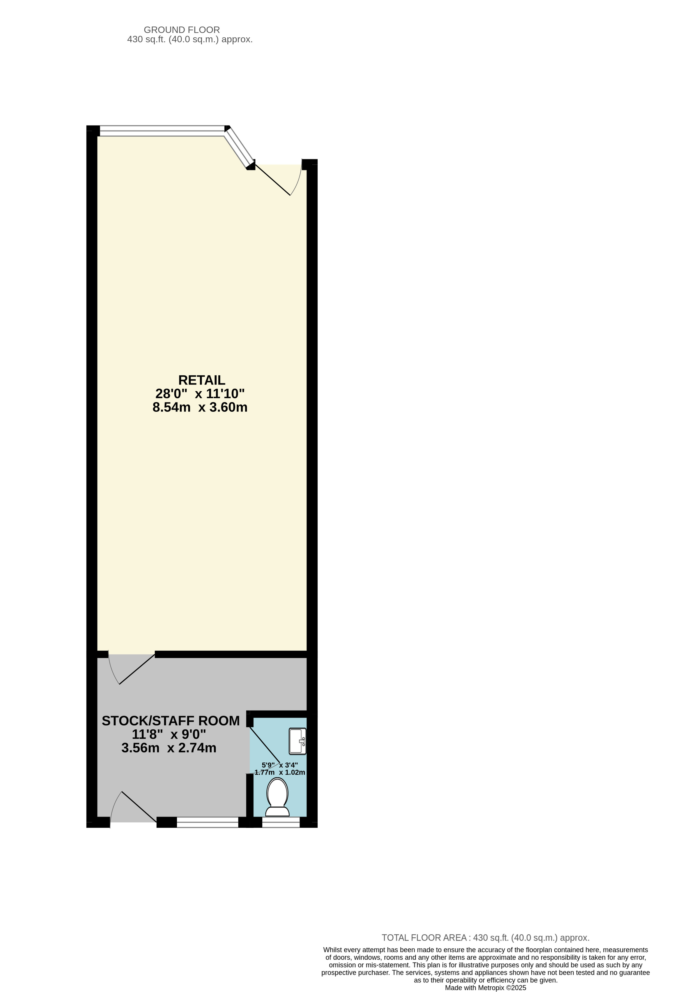 Trading forecourt 99 sq ft (9.2 sq. metres)