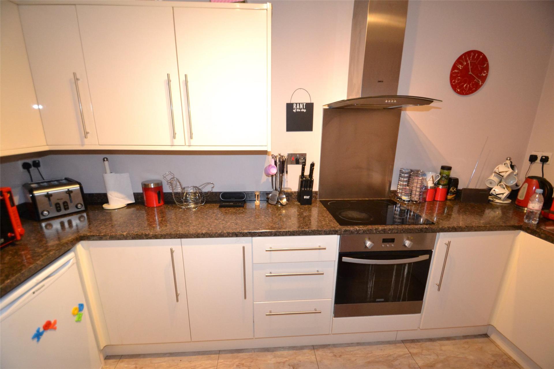 There is a lounge/dining room with double aspect windows. Modern fitted kitchen is supplied with integrated oven with electric hob.