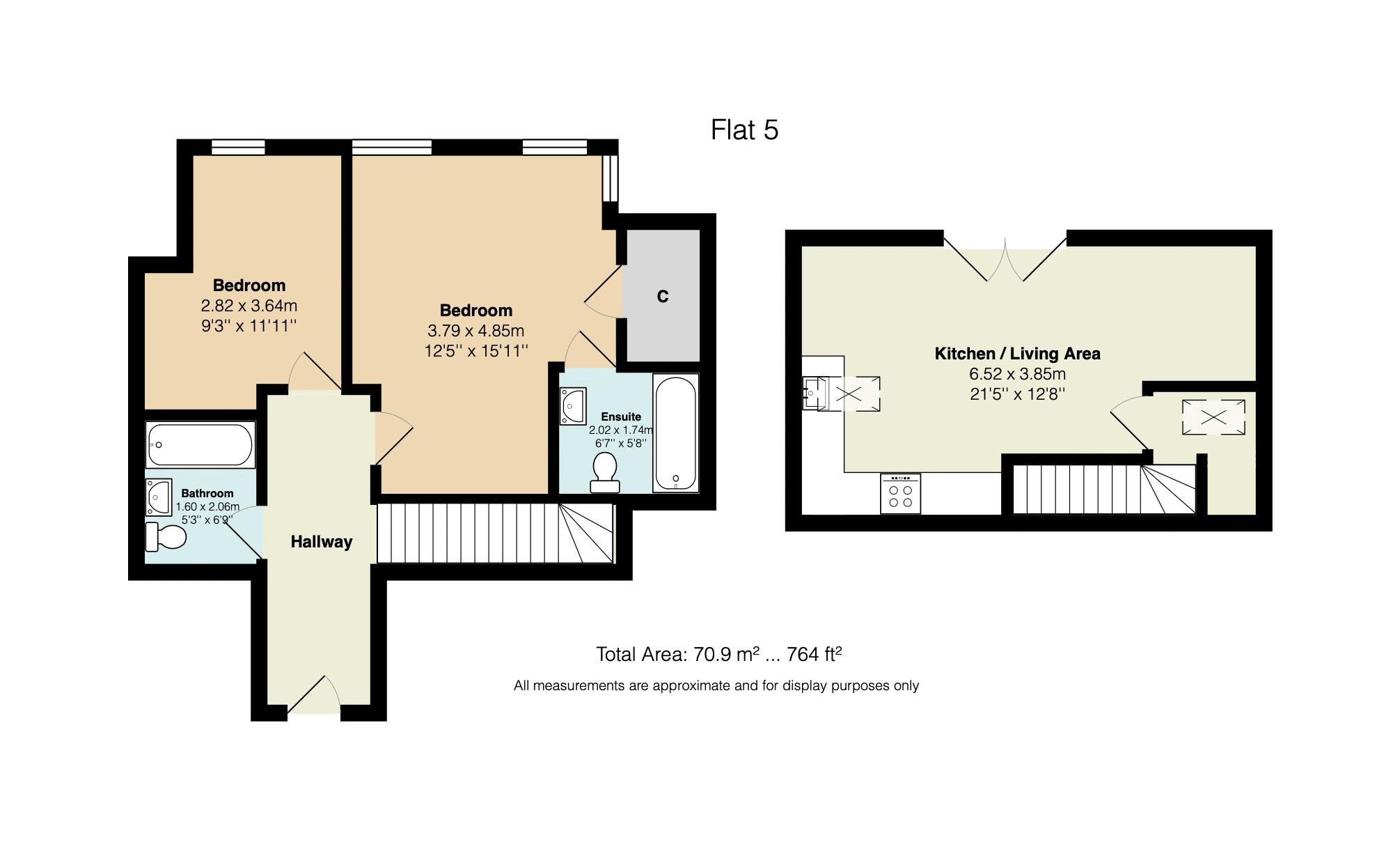 - Two bedrooms