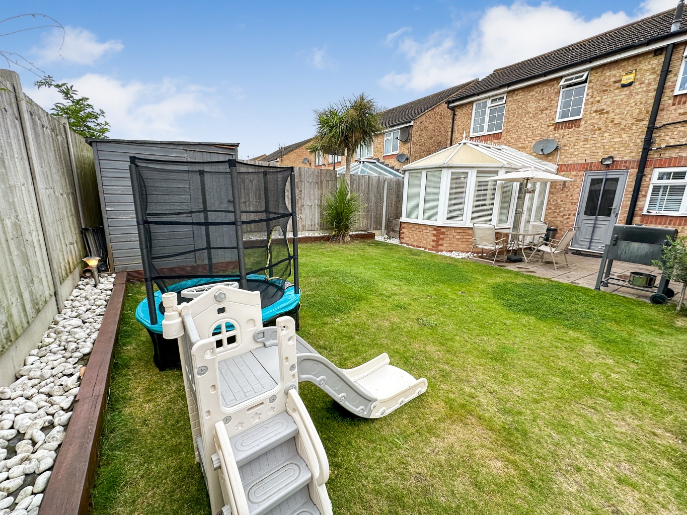 Externally, the property boasts off-street parking and a garage, providing secure storage and ample space for vehicles – a highly desirable feature in any family home. The garden offers a spacious yet low-maintenance outdoor area, ideal for al fresco dining or children's play. Situated in Danbury Crescent, the home is well-positioned for transport links and local amenities, making daily commutes straightforward. The area is also convenient for accessing local schools and community facilities, contributing to a well-rounded lifestyle.