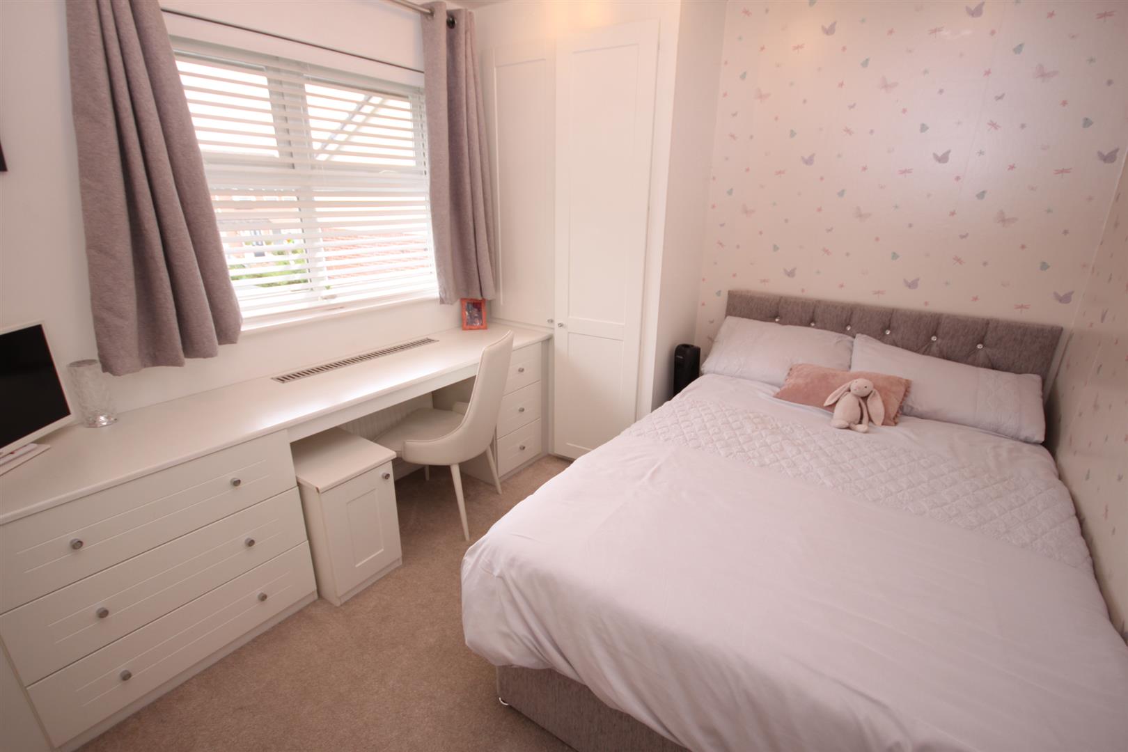 The property s located down a private driveway in the popular residential area of Laurel Gardens. The property offers a lounge with patio doors overlooking the enclosed rear garden, a dining room and a kitchen with breakfast bar and a separate utility room with white goods included. There is also a home study with built in desk and storage space. Upstairs are three double bedrooms and a fourth single bedroom. The master bedroom has an en-suite shower room and comes with fitted wardrobes, the remaining two larger bedrooms have built in wardrobe space and the fourth bedroom can offer further storage with bed included if required or can be offered unfurnished. A family bathroom completes the upstairs accommodation. There is driveway parking for two cars and the garage has been partly converted to provide an additional reception room/playroom/further office space. The remainder of the garage is still accessed via the garage up and over door and can be used for storage or to home pushbikes etc. The property can be made available with some furnishings included. The property is available from the 10th August 2023.