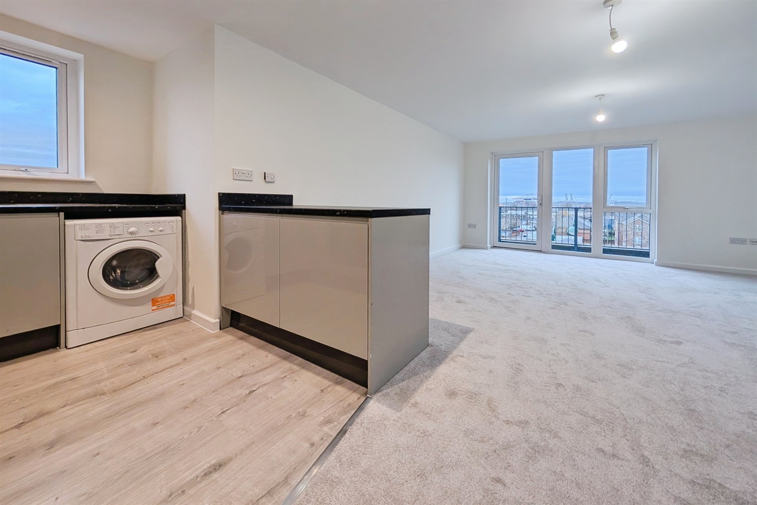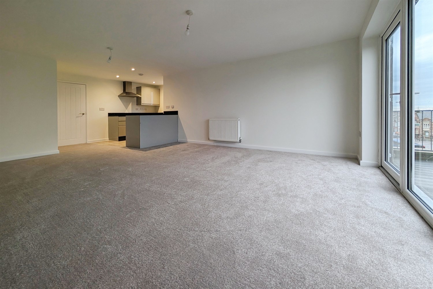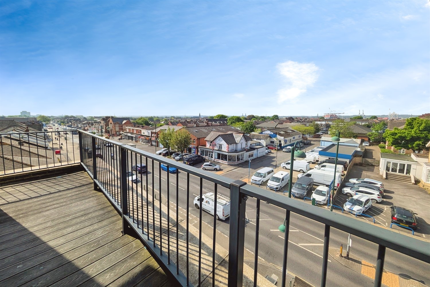 The property is accessed via the communal staircase and is located on the top floor. The apartment consists of an entrance hall, open plan kitchen/living room (white goods included, left in good faith and not warranted by the landlord), which opens to a wrap around balcony overlooking Southampton. The master bedroom has a window to the rear aspect and has an airing/storage cupboard and the is a further double bedroom with window to the side aspect.