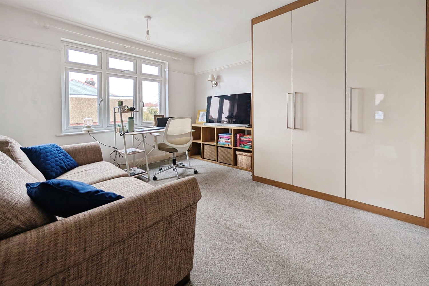 The property has a porch which leads through to the hallway with under stairs storage cupboard and doors leading to the living/dining room and kitchen. The living room has a bay window to the front aspect, decorative fireplace and wiring for home cinema system. The dining area has french style doors to the rear aspect. The kitchen/breakfast room has a range of fitted units,5 ring gas hob, oven/grill and side access door. On the first floor there is a landing with boiler/storage cupboard, master bedroom with bay window to the front aspect and fitted wardrobes, a double bedroom to the rear aspect with fitted wardrobes and a further double bedroom to the rear aspect. There is a bathroom/wc to the front aspect.