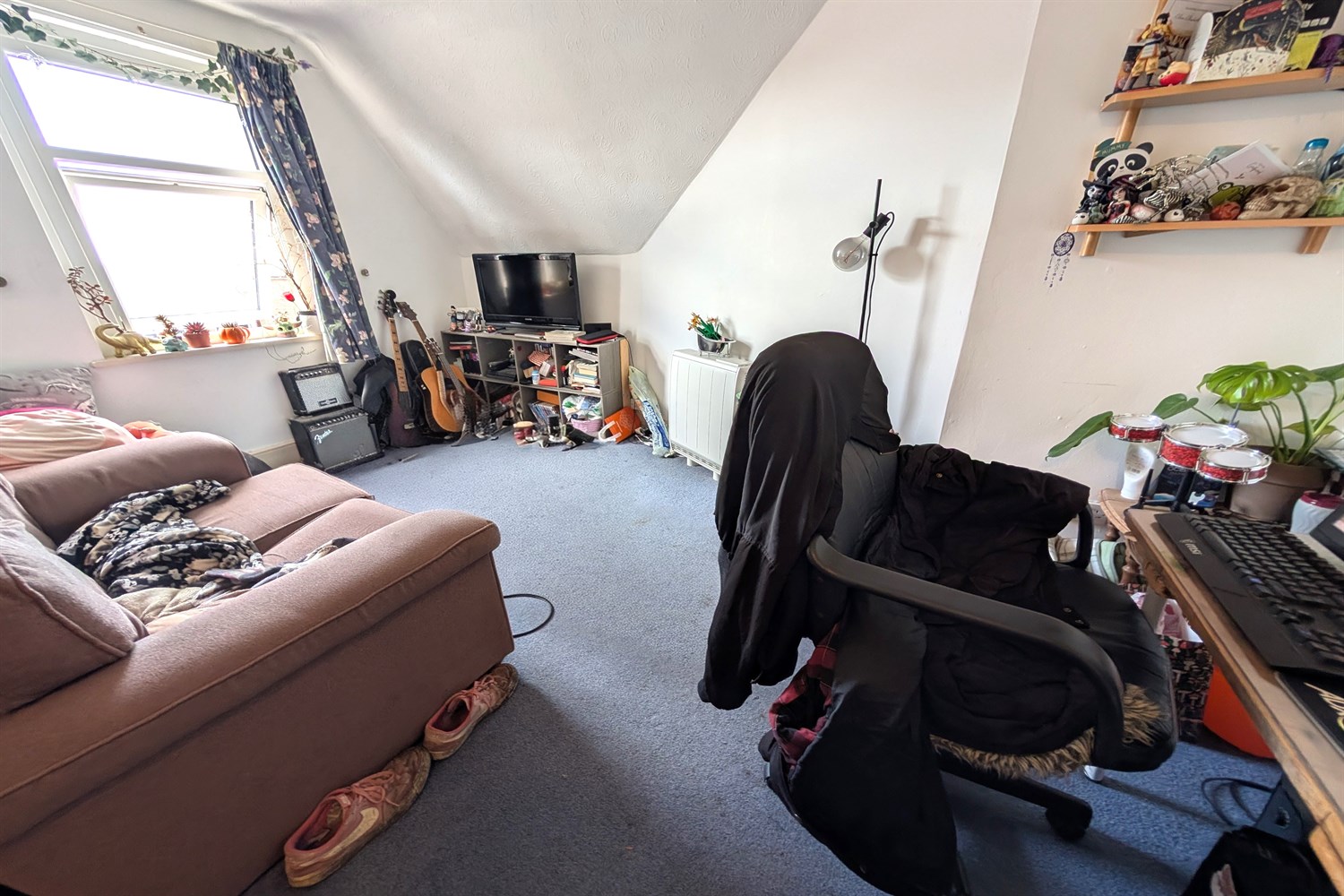 The property is accessed via the communal entrance and stairs lead you to the property which has it's main door on the first floor. There is a a further staircase leading to the top floor landing with storage cupboard, open plan kitchen/living room with window to the front aspect, double bedroom with window to the side aspect and a shower room/wc.