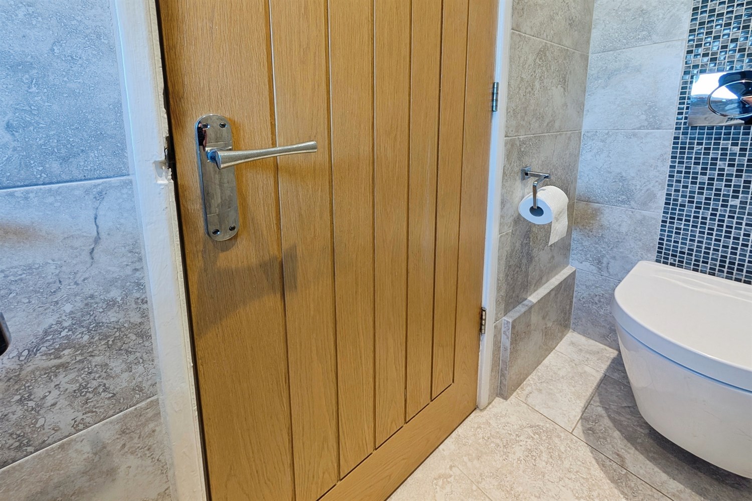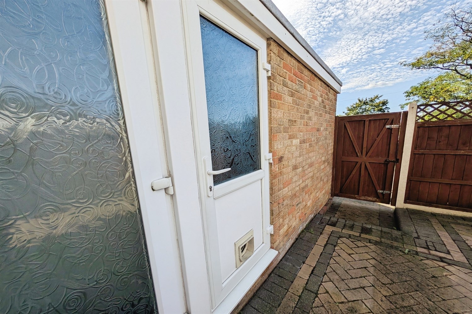 There is a driveway to the front aspect with an artificial lawn area, and an enclosed courtyard garden to the rear with rear access gate, storage building and a storage shed.