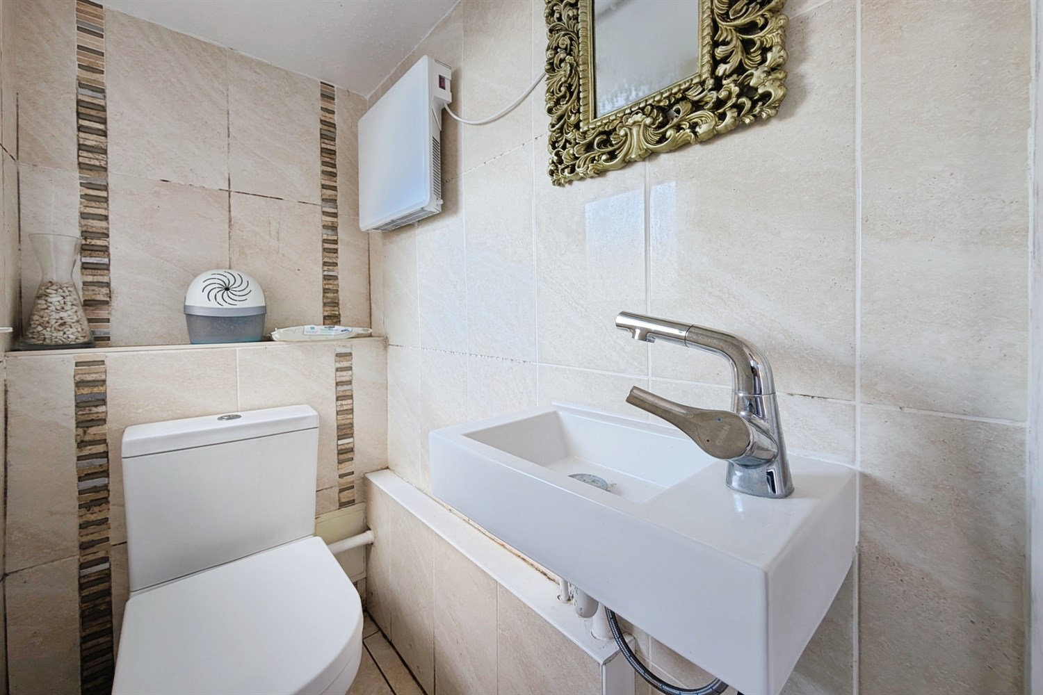 The property consists of an entrance porch with storage cupboard, leading to an entrance hall with under-stairs storage cupboard, a fitted kitchen with two built-in pantry cupboards with a window and door leading to the rear lobby area, with utility room, cloakroom/wc and a door leading to the rear garden. There is also a dual aspect, open plan living/dining room with window to the front aspect and french doors to the rear aspect. On the first floor there is a master bedroom with fitted wardrobes to the front aspect, a double bedroom with fitted wardrobe, boiler cupboard and window to the rear aspect. There is a further single bedroom, with fitted wardrobe and window to the front aspect, and a bathroom/wc with window to the rear aspect.