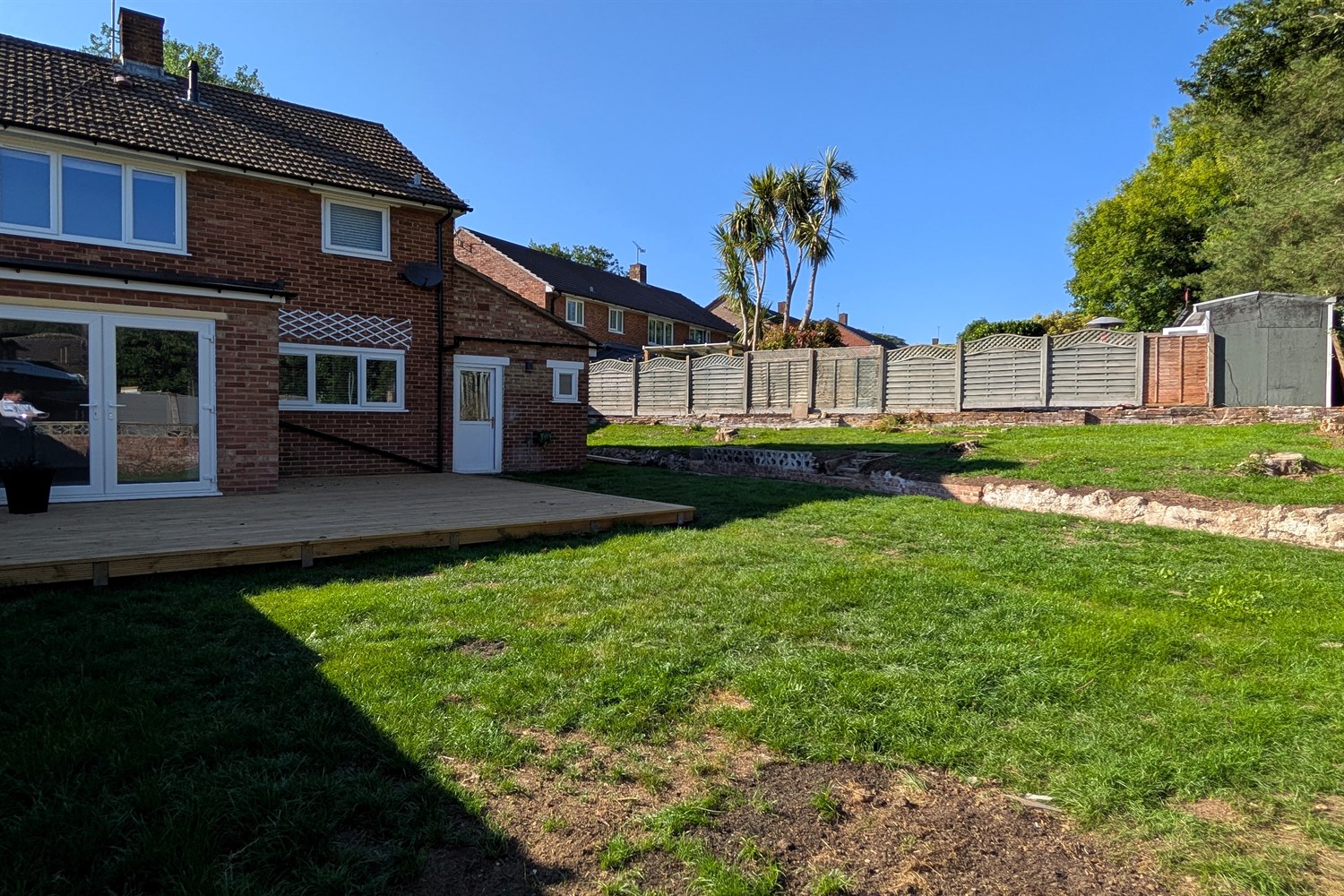 There is a garden to the front aspect, door to storage area and gate. The property is on a corner plot and is mostly laid to lawn with a decked area to the rear of the building.