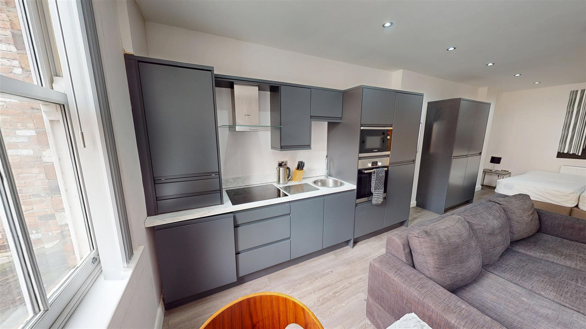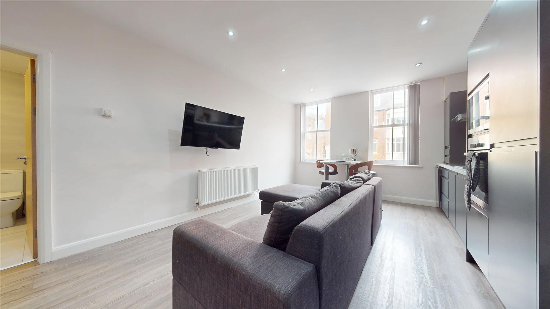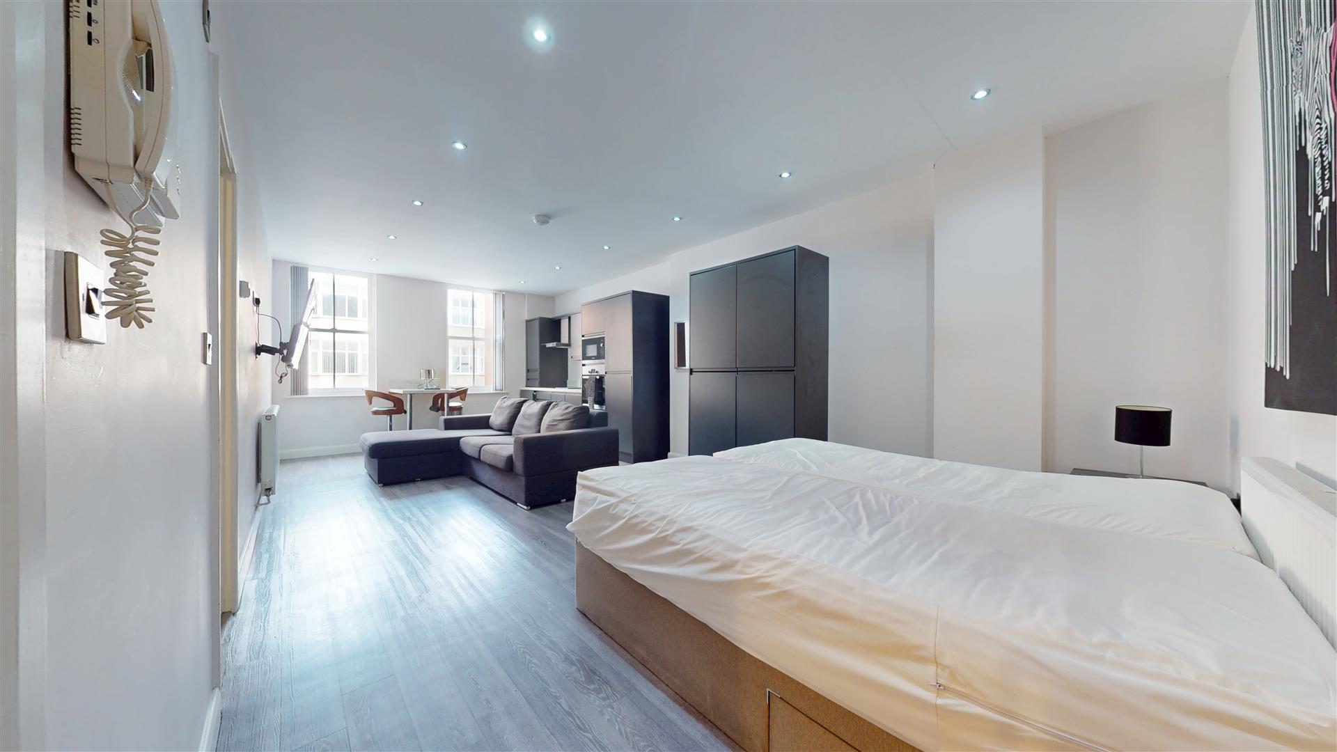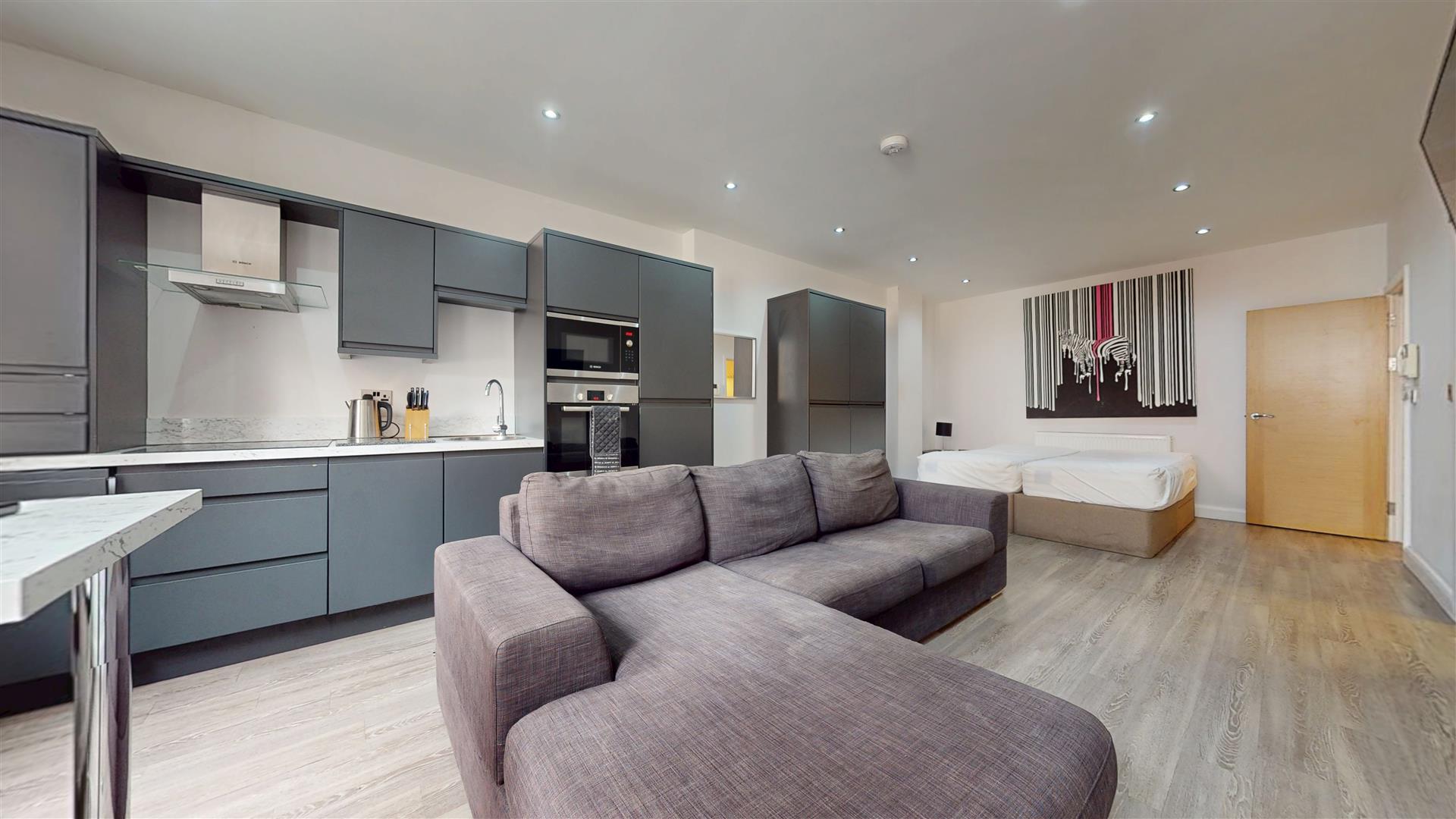 This is a partly furnished studio, finished to a very high standard with a fantastic kitchen with integrated appliances such as oven, fridge, freezer & microwave, immaculate shower room and offering luxurious furnishings including a wall mounted television.