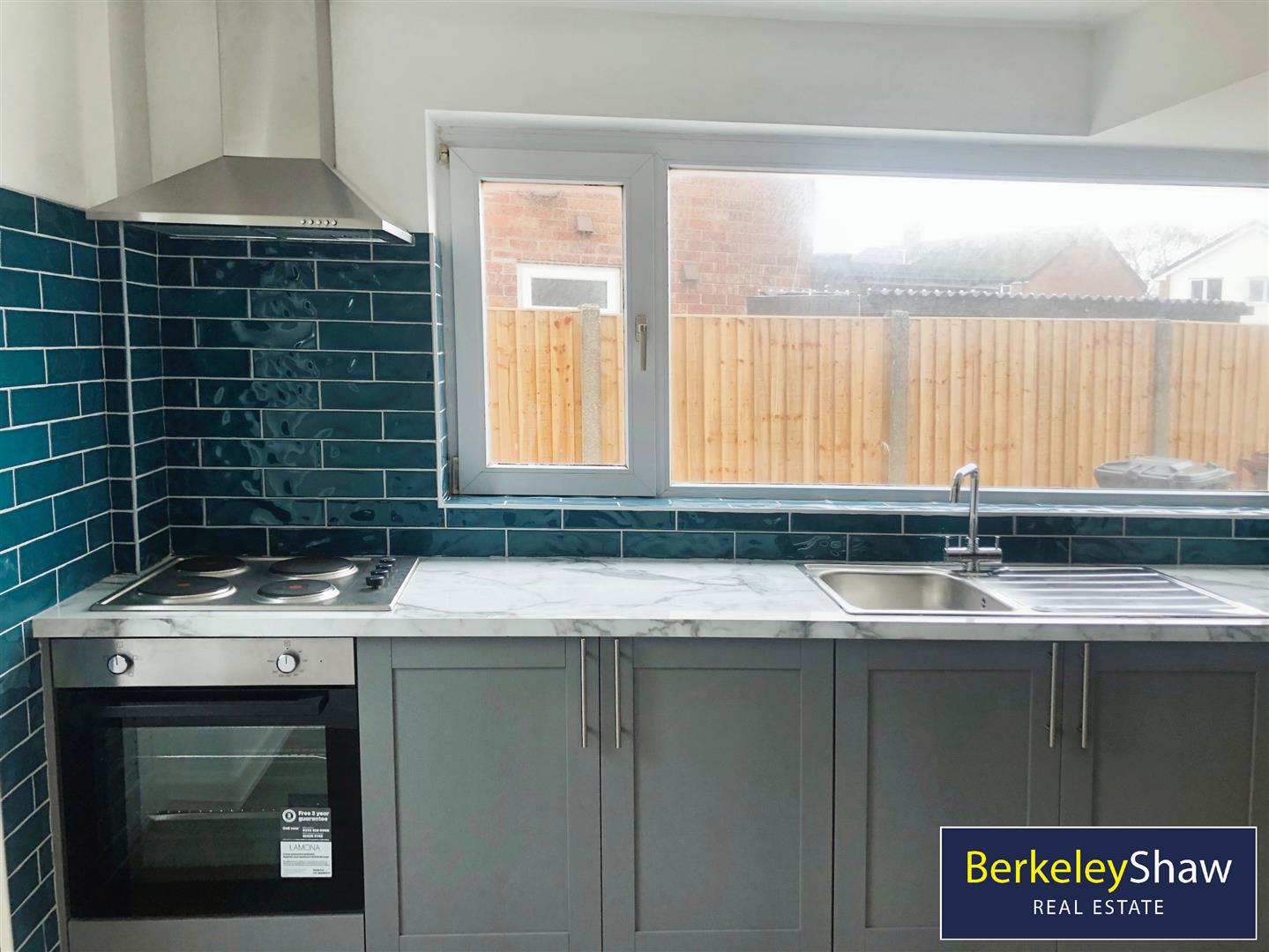 Kitchen - Double glazed window and exterior door, kitchen comprises of a range of fitted base and wall units, tiled walls around surfaces, Stainless steel sink with mixer taps, integrated electric oven and hob, space and plumbing for dishwasher, laminate flooring