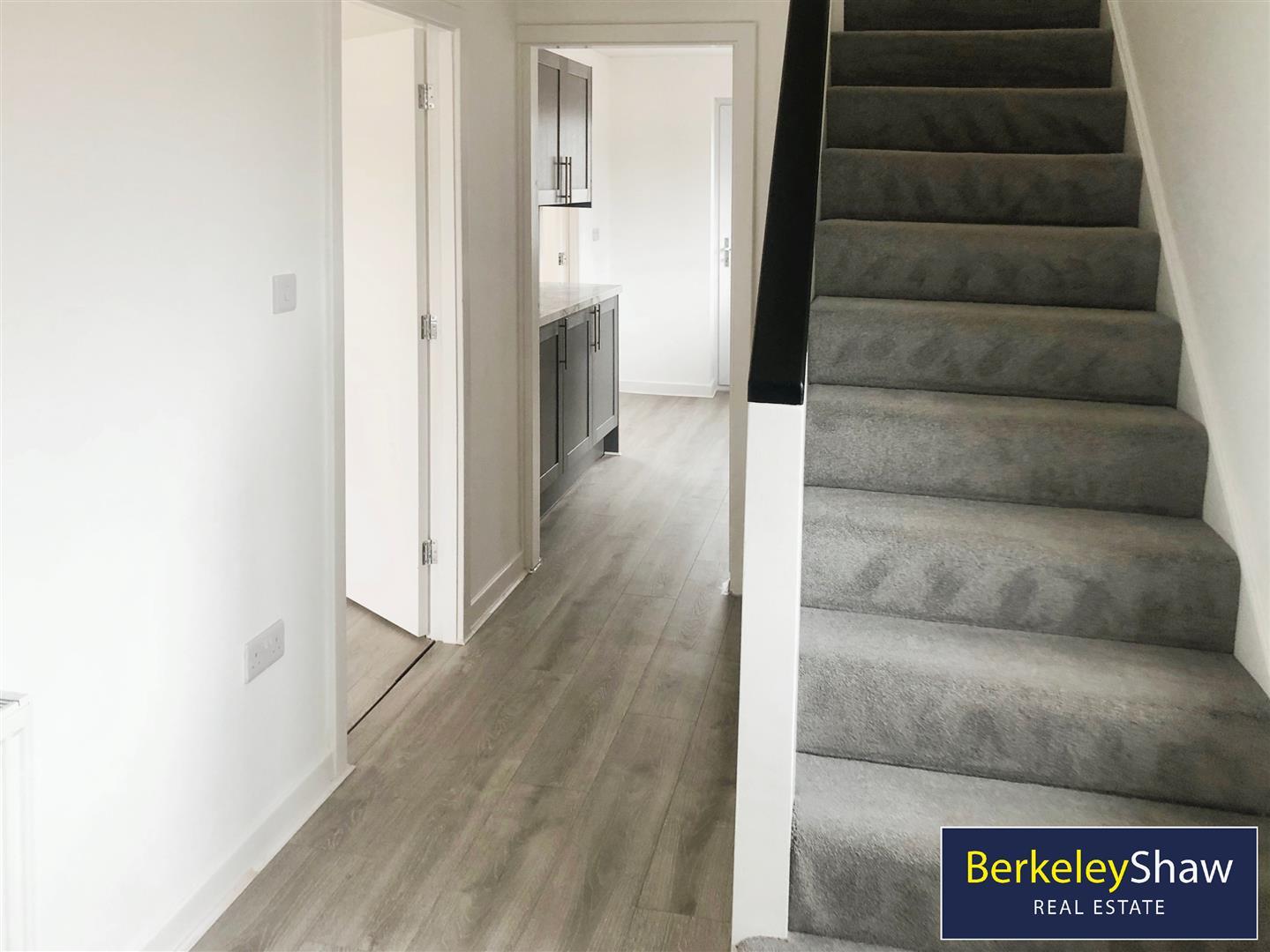Hallway - Double Entrance Door, laminate flooring, boiler, plumbing for washing machine understairs, staircase to the first floor with carpet