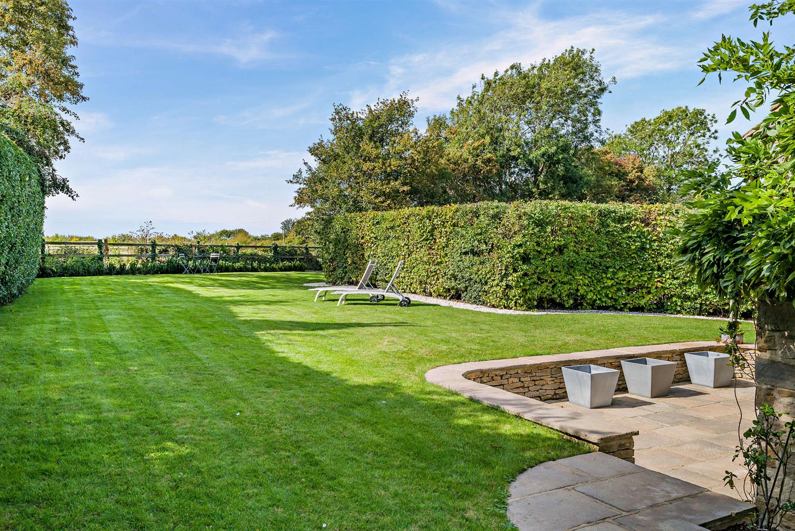 Outside, the rear South West facing garden is a standout feature of Buscot House. Directly outside the home is a lovely patio area set up for outdoor dining and entertaining. A stone path leads through the garden to a further lawned area at the bottom, which enjoys uninterrupted views over the surrounding fields, perfect for peaceful afternoons or watching the sunset.