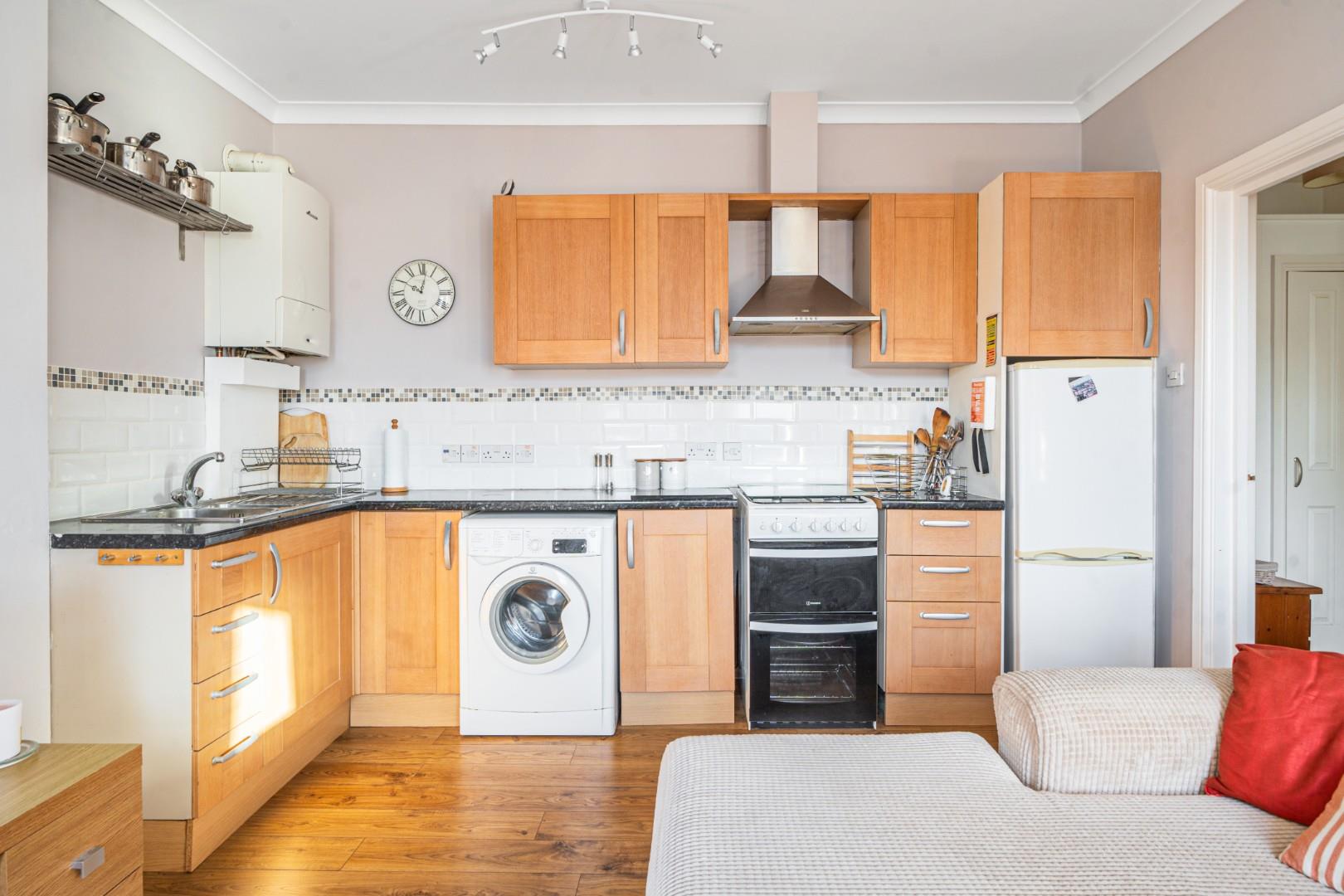 The flat comprises one single bedroom and one double bedroom, providing ample space for rest and privacy. Each room is thoughtfully furnished, ensuring a homely feel from the moment you step inside. The fully furnished nature of the property means you can move in with ease, making it an attractive option for those looking to settle quickly.