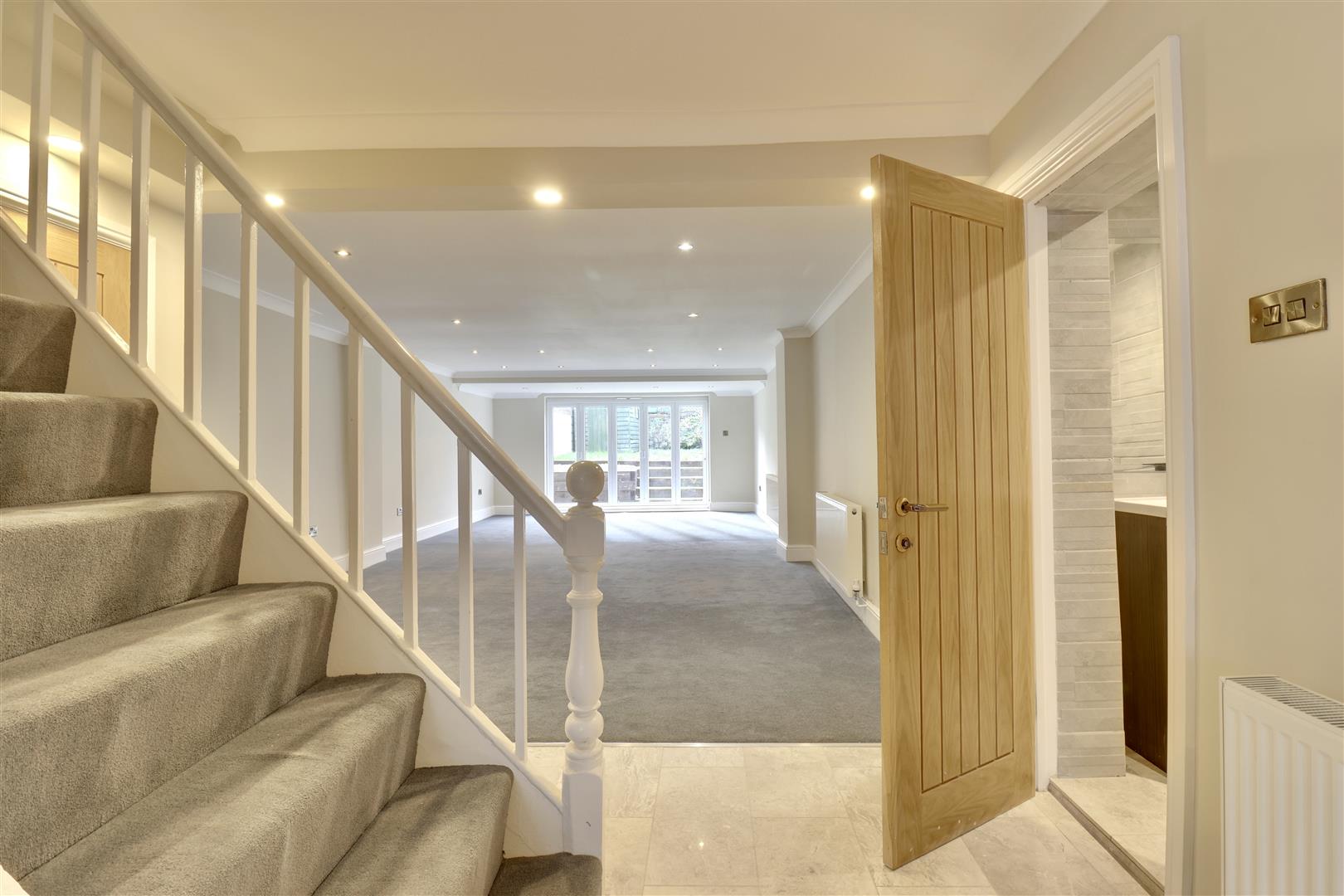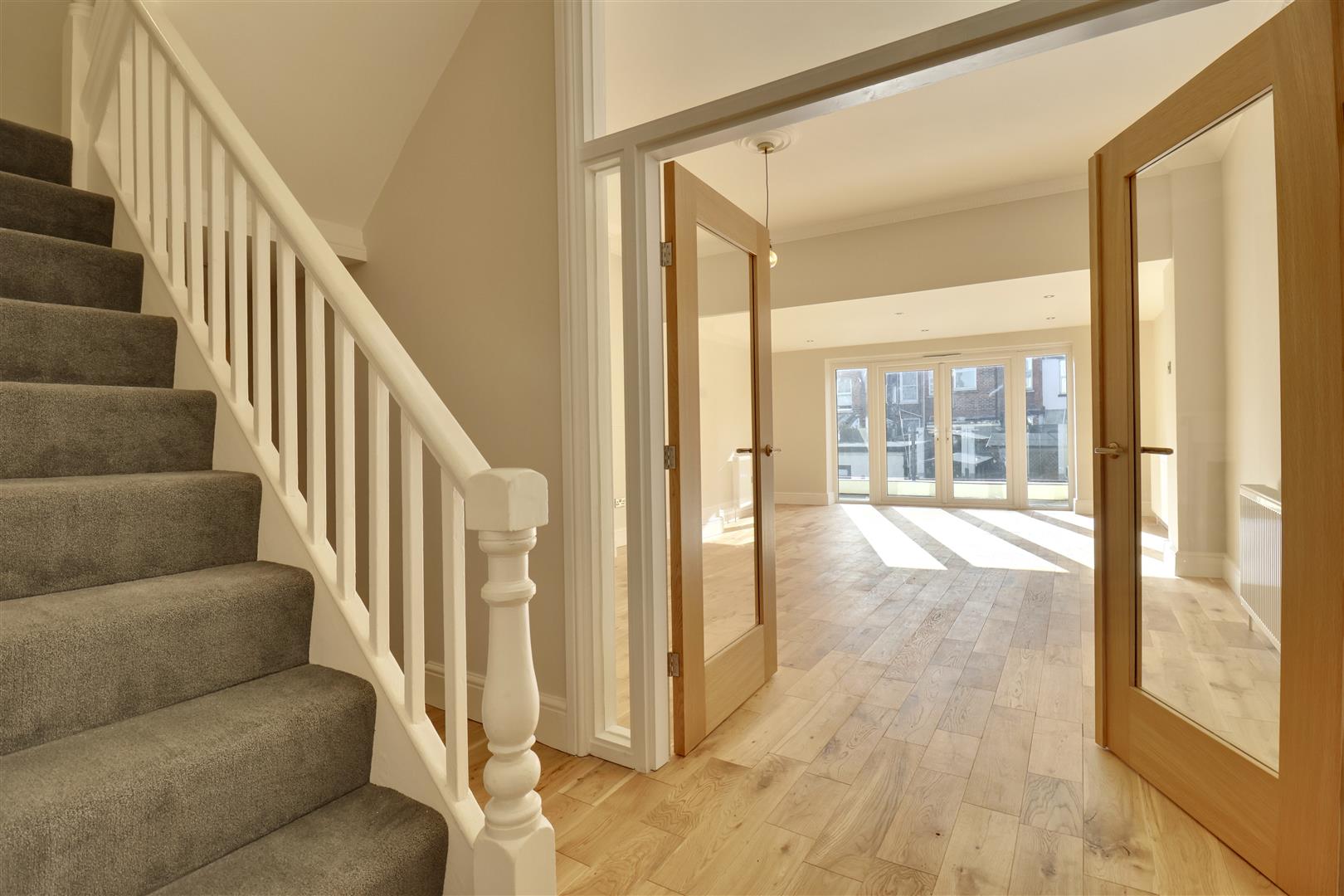 As you step inside, you're welcomed by a spacious reception room, elegantly designed for both relaxation and entertaining. On the lower level, the second reception room sits alongside the stunning modern kitchen-sleek, fully fitted, and designed to inspire culinary creativity while serving as the social heart of the home. These inviting settings are ideal for lively family gatherings or peaceful evenings at home.