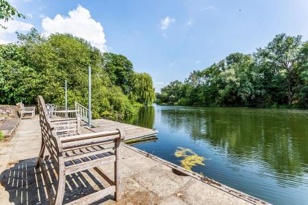 ** RIVERSIDE PROPERTY ** Offering more than 3,800 square feet of living accommodation over two floors, 'Hay Court' is a wonderful riverside home situated in a private tree lined road between Staines and Chertsey. The 63' moorings and landing stage are accessed via Penton Hook Marina, part of the River Thames backwater. Occupying a plot that is approximately a third of an acre, the property features a large south facing riverside garden, four double bedrooms, (three with river views) and three bathrooms, two of which have been replaced in recent years (includes two en suites). The ground floor comprises a large entrance hall, cloakroom, three spacious reception rooms with garden and riverside views, conservatory and a huge family kitchen/breakfast room. To the front there is ample off street parking for multiple cars. EPC C.