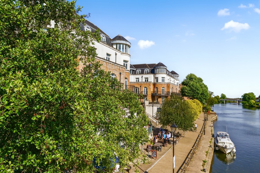 **VIEWINGS ON SATURDAY 16TH AUGUST BY APPOINTMENT ONLY** Thames Edge Court is an iconic riverside development, with a concierge service, set on the banks of the River Thames within walking distance of riverside pubs and restaurants, town centre and mainline station. Occupying a position on the third floor, this spacious apartment measures 844 square feet and features a large entrance hall, two double bedrooms, 30' open plan living/dining room and modern fitted kitchen, balcony, modern bathroom and secure underground allocated parking. EPC D.