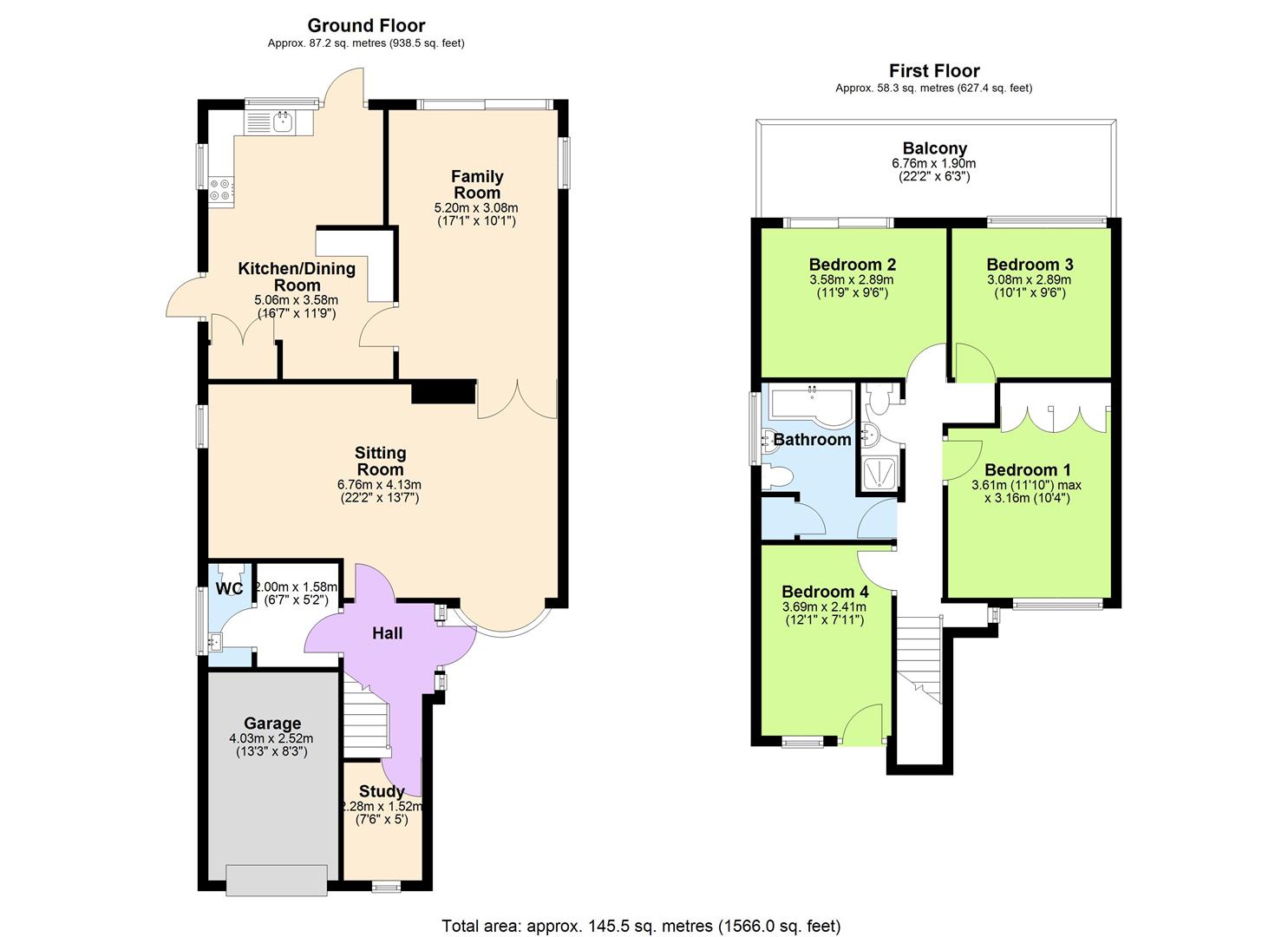 Upstairs, you'll find four generously sized bedrooms. The master bedroom is a standout feature, complete with a private balcony overlooking the rear garden - a perfect spot to enjoy your morning coffee. The upper floor also benefits from both a modern shower room and a separate family bathroom.