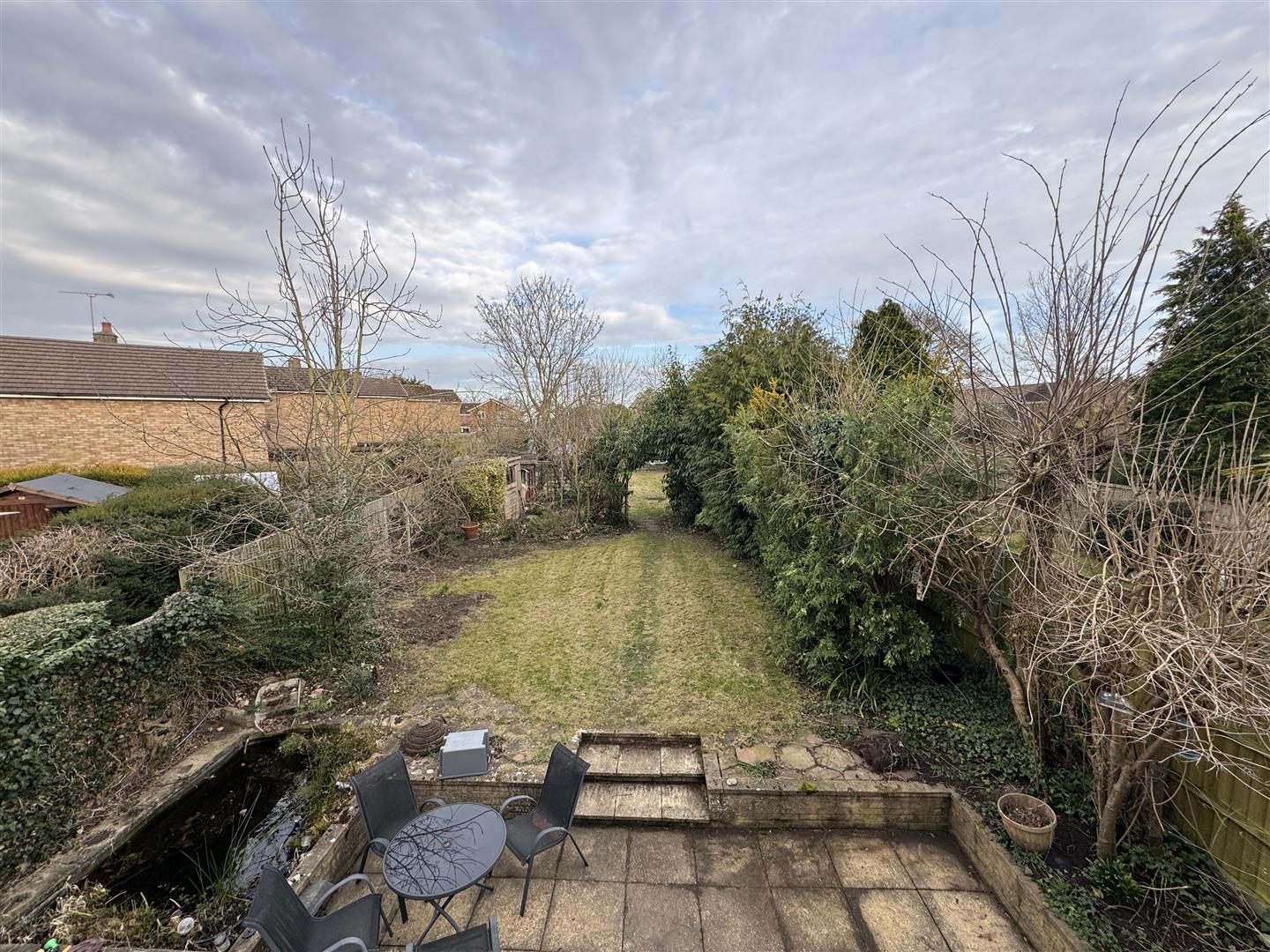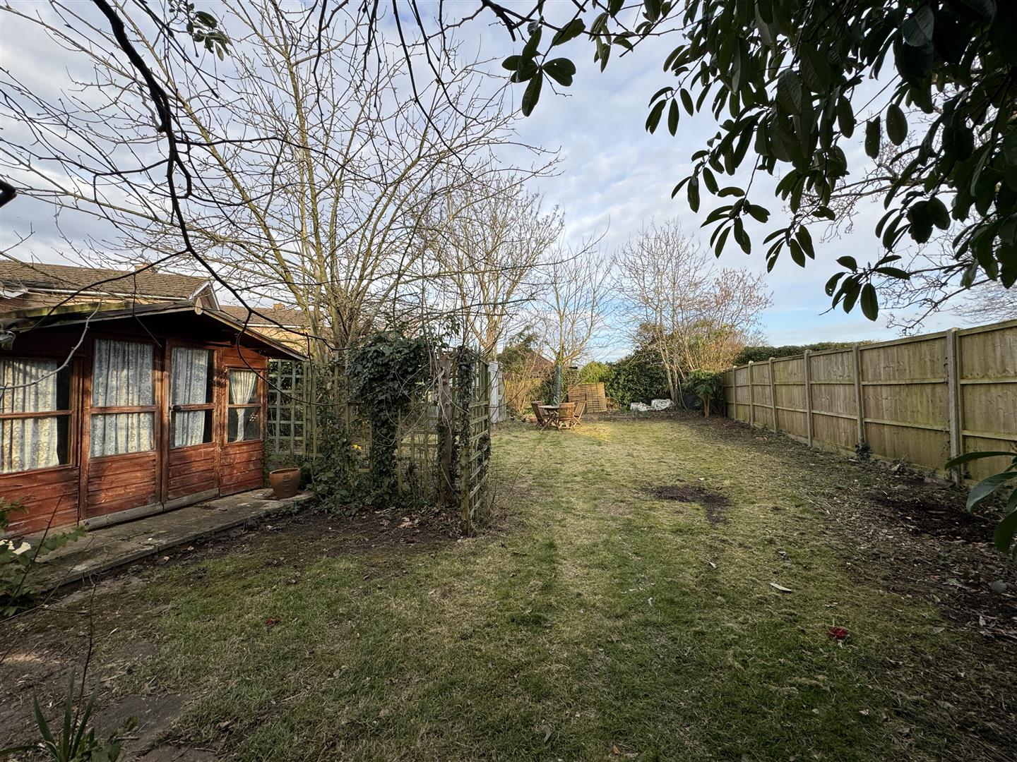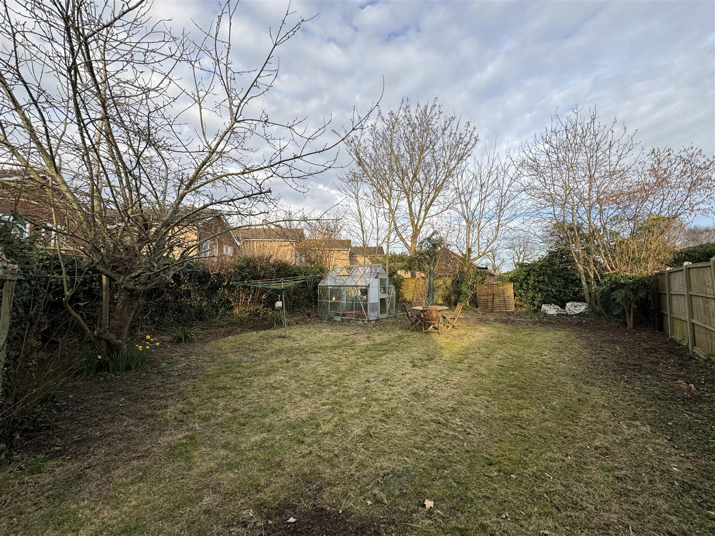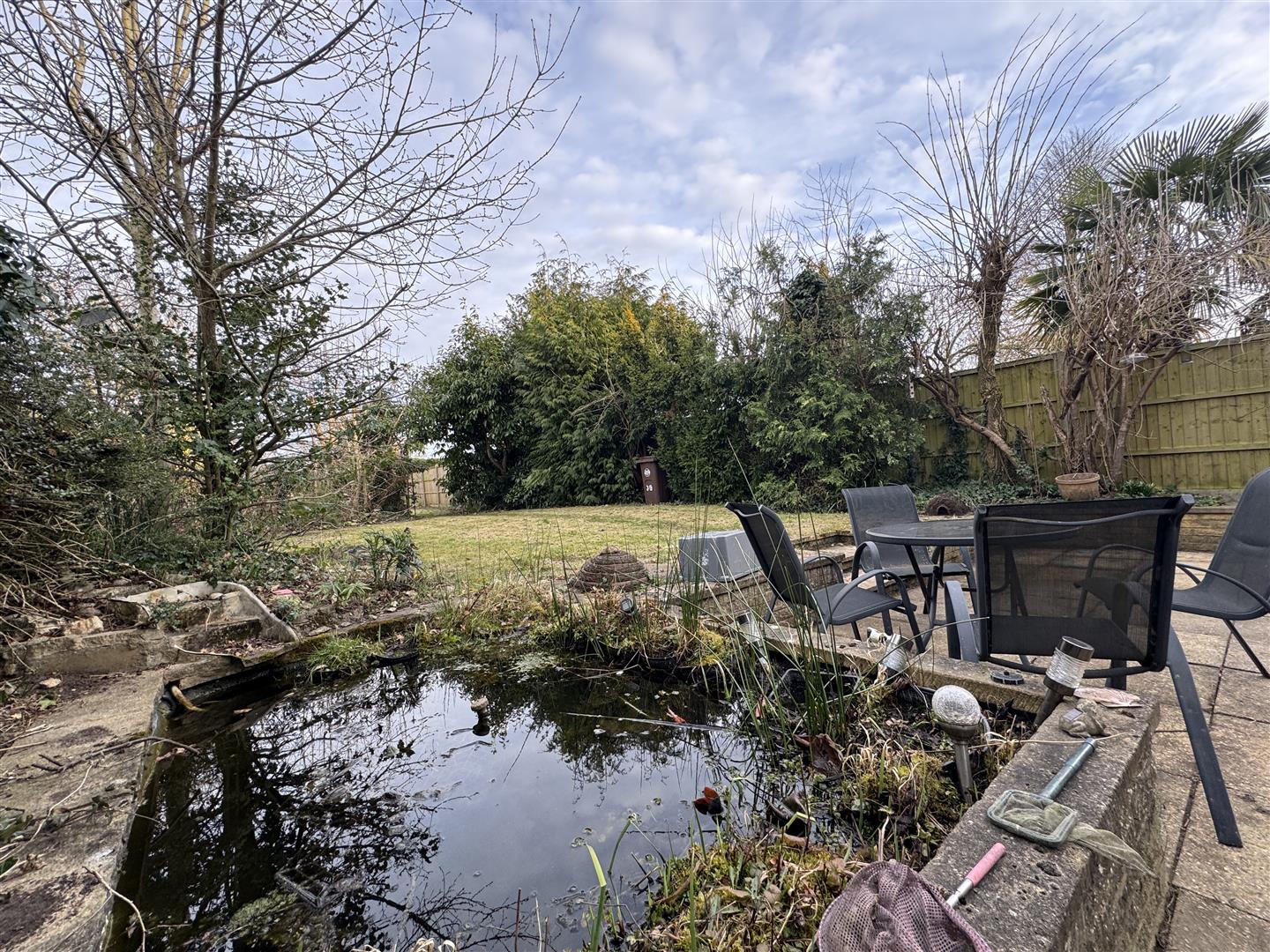 Side & Rear: Large rear garden that is laid mainly to lawn, established trees, paved patio area, raised pond, timber sheds,, greenhouse, flower and shrub borders, outside tap.