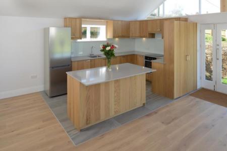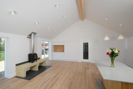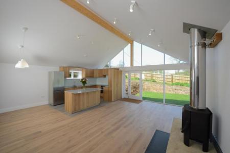 The accommodation comprises an open plan kitchen (with all appliances fitted), dining area and sitting room with log burning stove along with 3 bedrooms. The master bedroom has built-in units providing ample storage and an en-suite bathroom with shower over. The second double bedroom has built-in units and the third is a single bedroom/study and there is a separate family bathroom with a walk-in shower.
