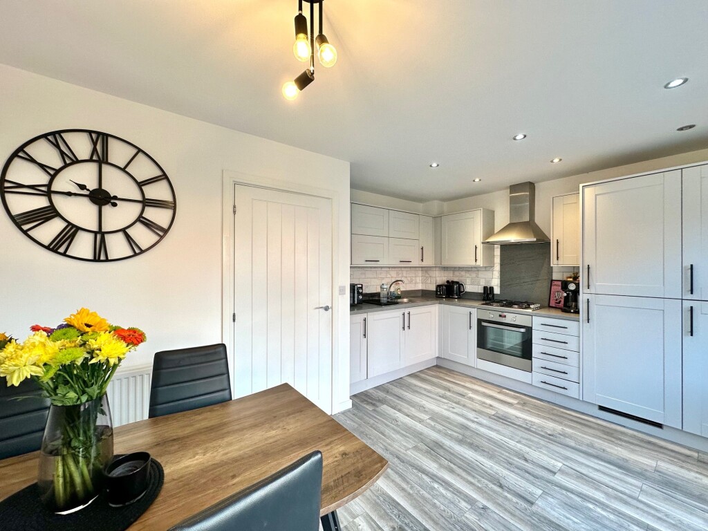 Three-bedroom end of terrace home offering modern living. Boasting lounge, open plan kitchen / dining room with French doors leading to enclosed garden with storage shed, To the first floor there are three bedrooms and bathroom, with the master bedroom offering en-suite facilities, this house has an abundance of natural light, creating a bright and inviting atmosphere throughout. The luxurious finish and stylish details add a touch of elegance to the space. External rear enclosed garden with side access and off-street parking for two cars to the front of property. Don't miss the opportunity to make this modern gem your new home.