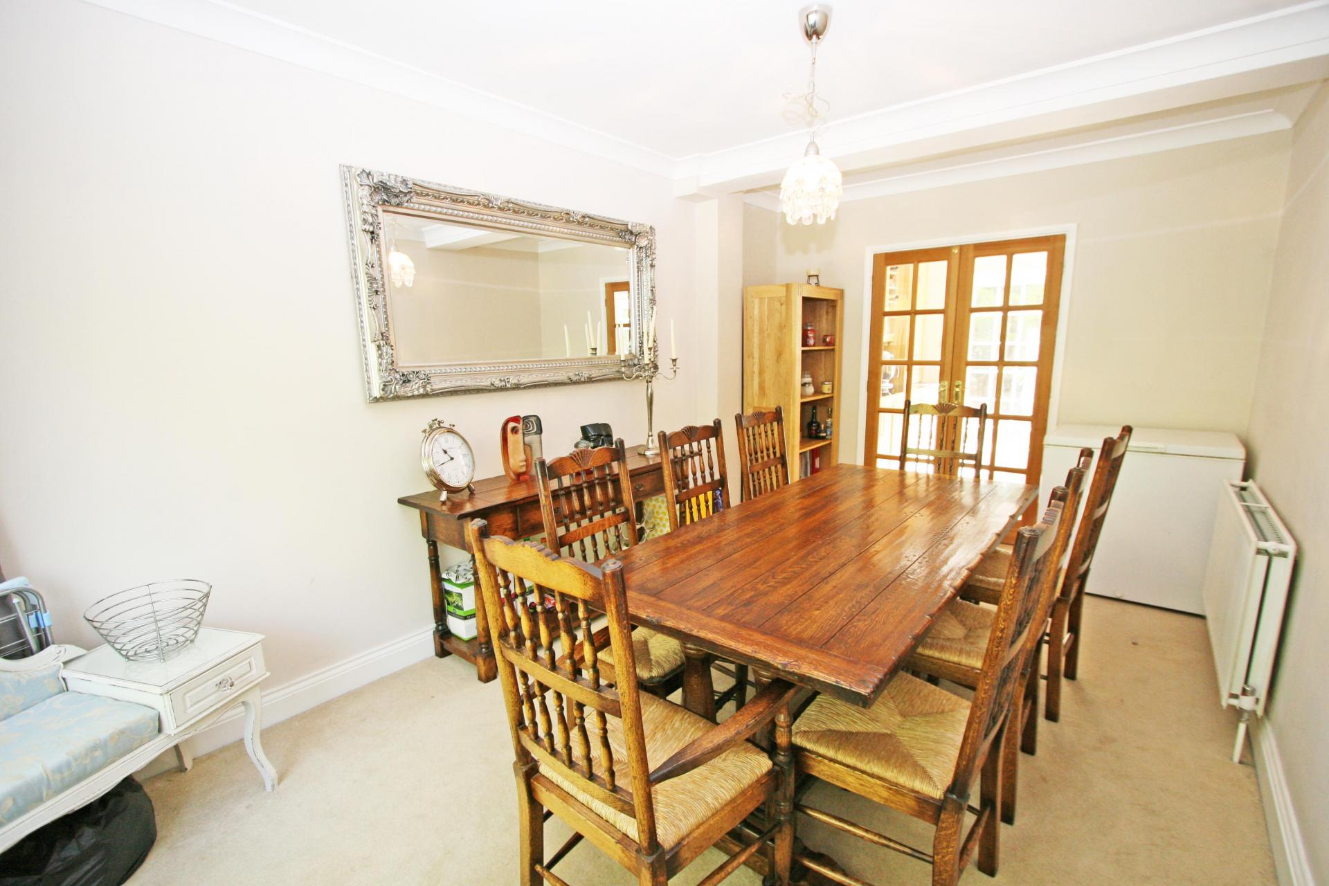Dining Room 17’ X 9’ (5.1 X 2.7) double glazed doors to