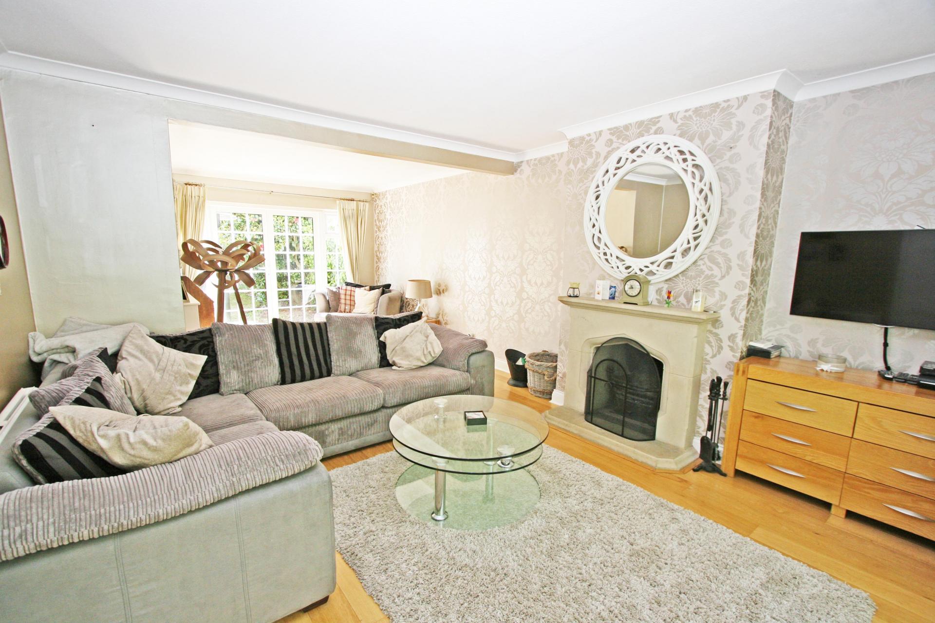 Sitting Room 24’ x 12’ (7.3 x 3.6) with feature fireplace and patio doors to rear garden