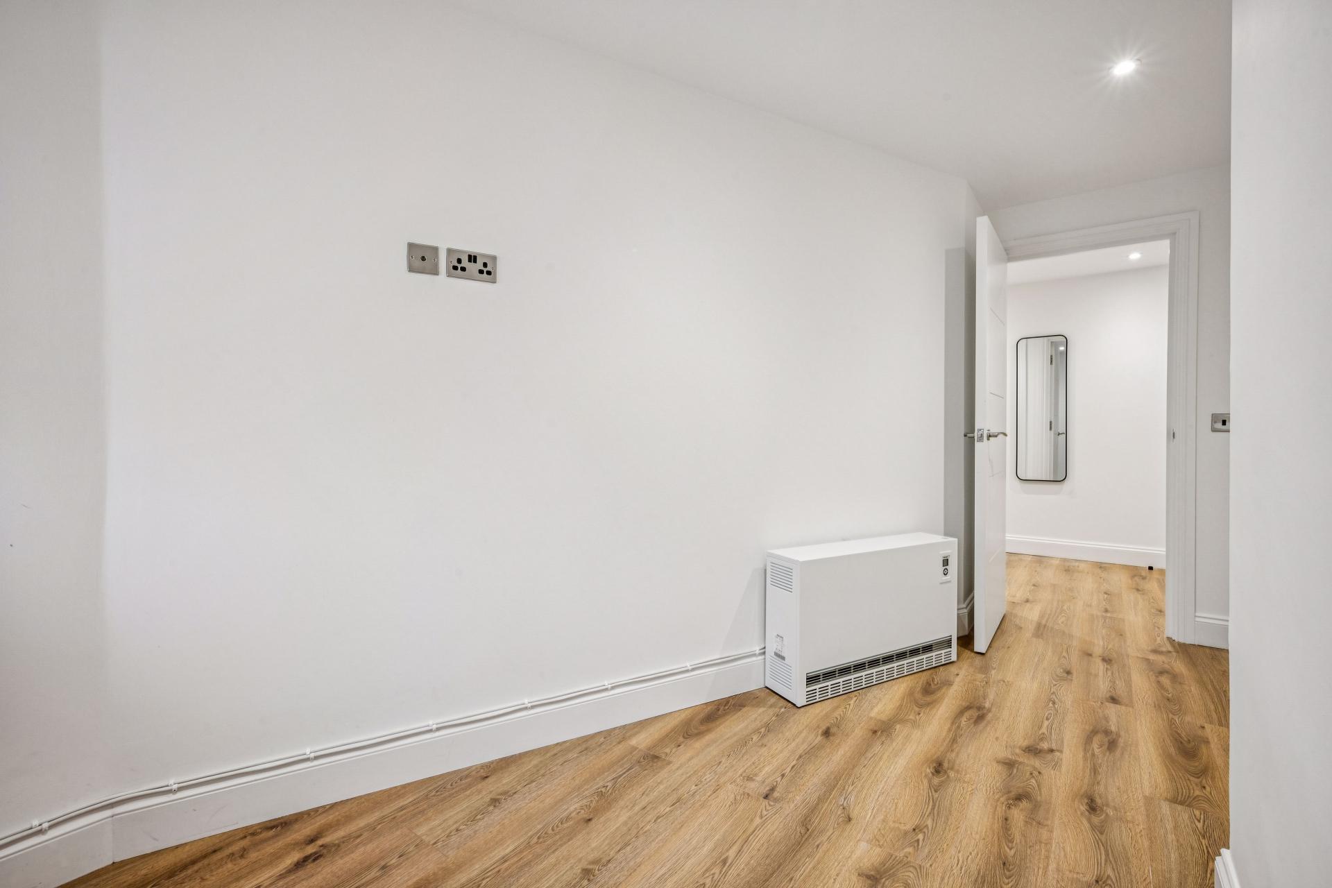 The apartment has been carefully converted, and has a good level of specification, together with its own grand main private front door entrance leading to an impressive double-height hallway with ample space. There are two double bedrooms with black out window blinds. The apartment is painted white throughout, has engineered wooden flooring, together with one bathroom with a good-sized bath.