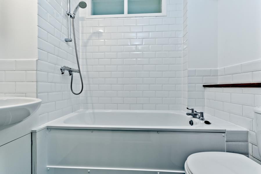 - Bathroom with power shower over bath