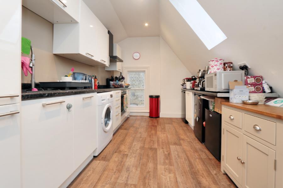 Seymours of Surbiton is pleased to present this impressive and spacious two-bedroom top-floor conversion apartment situated in an elegant Victorian residence. This property is conveniently located within walking distance of the mainline station, high street, the Thames, and Kingston town center. Highlights include a generous lounge/dining area featuring a period fireplace and high ceilings, a uniquely designed contemporary kitchen breakfast room equipped with a modern built-in oven, hob, and hood, as well as two large double bedrooms with built-in storage. The apartment also boasts a stylish white and stone bathroom with a shower over the bath and gas central heating.