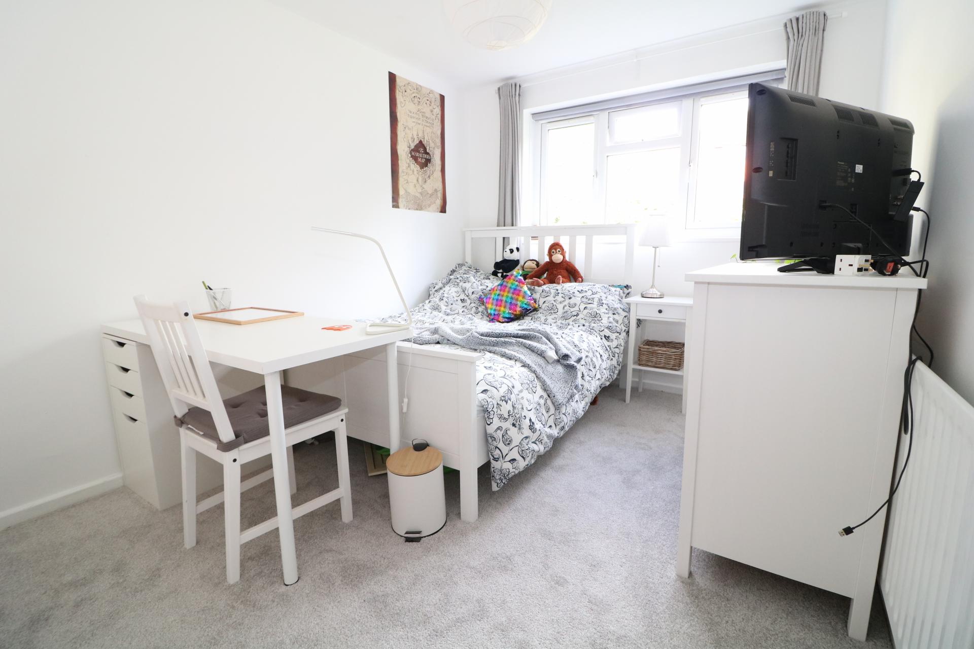 Situated on the first floor comprises of entrance hall with storage cupboard and doors to all rooms, two large double bedrooms both with built in wardrobe space, kitchen with appliances and ample storage, lounge diner with storage and views over the front of the development and a family bathroom with shower over the bath and separate W/C. Large separate storage unit on ground floor. Unfurnished