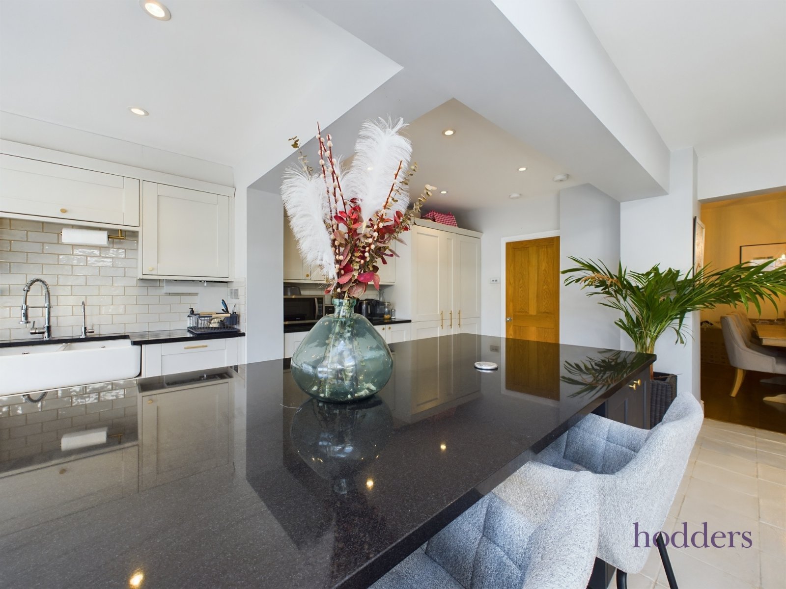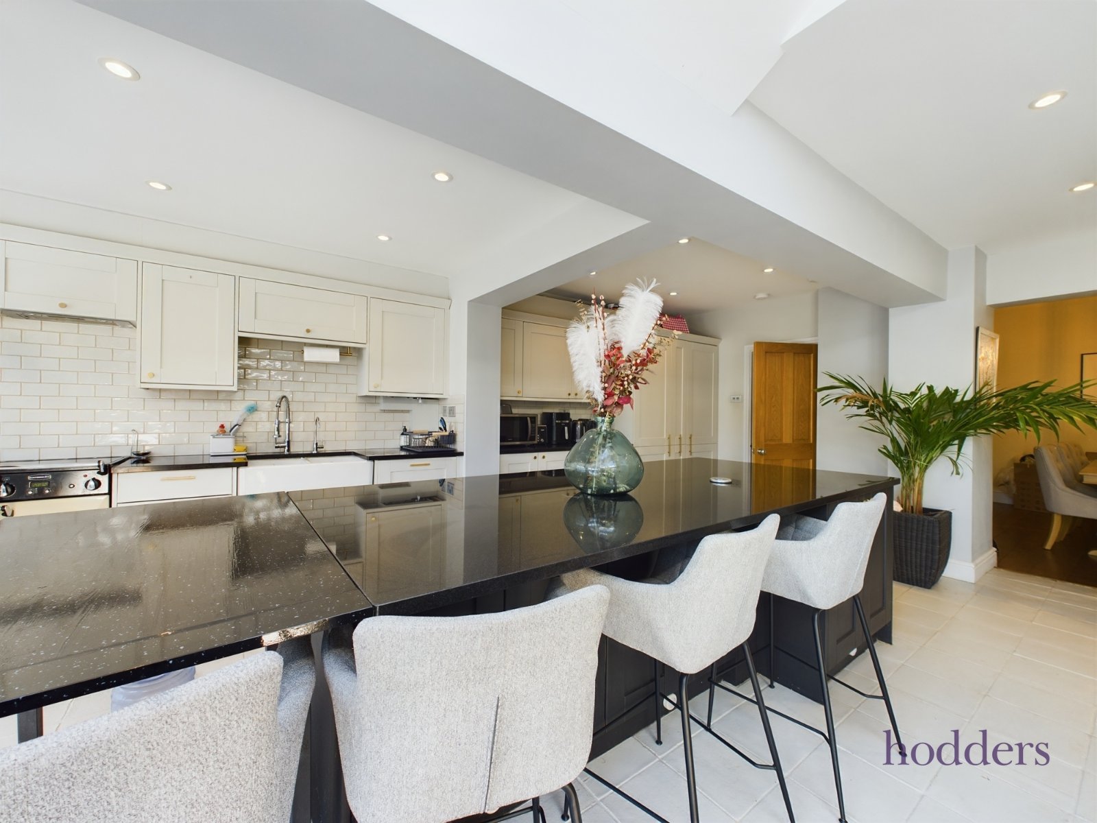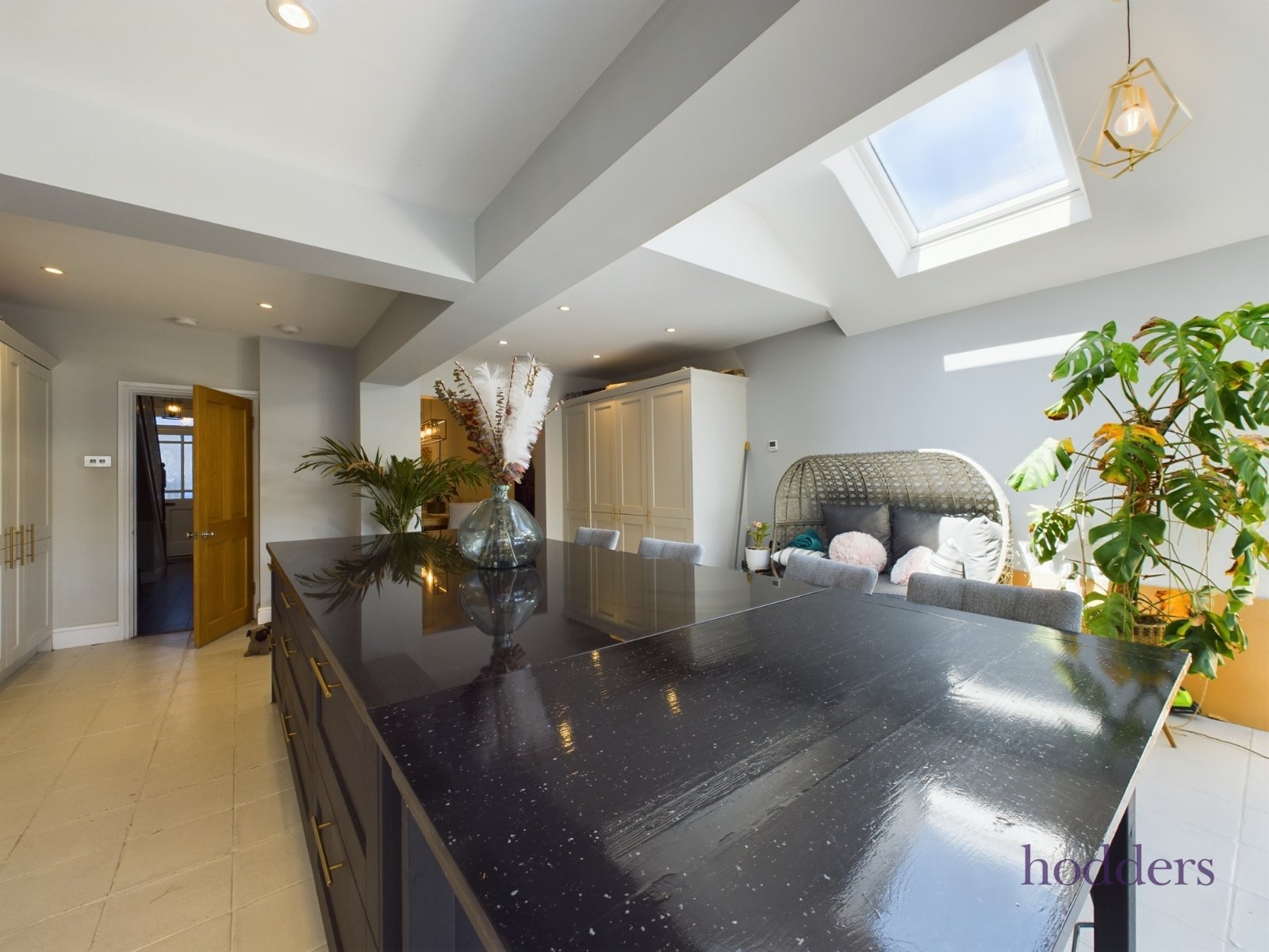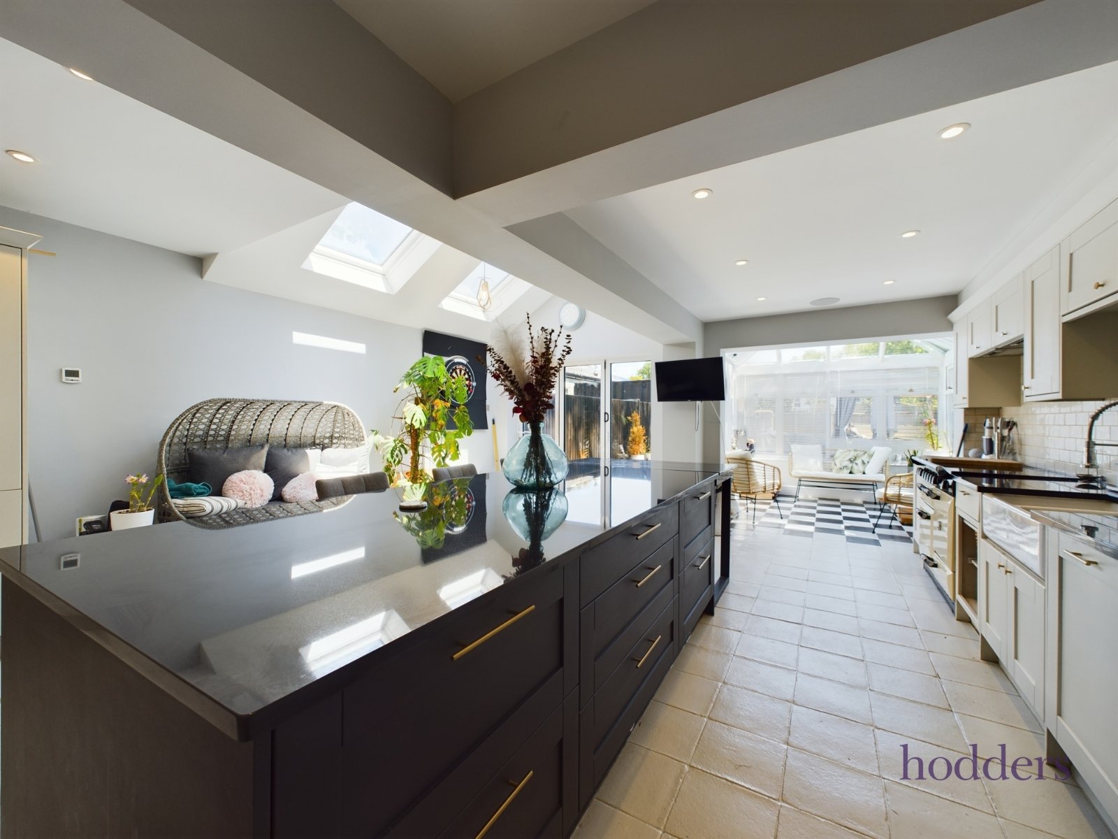 Situated within the heart of Addlestone is this wonderful five bedroom two bathroom detached family home. The property is modern and neutrally decorated throughout with beautiful views to the rear. The centrepiece of the ground floor is a large kitchen diner spanning the entire width of the property and featuring bi-fold doors onto the garden. Upstairs offers four spacious bedrooms, with fitted wardrobes and en suite to master as well as a further family bathroom. Externally there is a beautifully landscaped garden to the rear with lawn and patio whilst to the front there is driveway parking for two cars. Addlestone town centre is within walking distance and offers an array of local amenities whilst the nearby Byfleet and New Haw mainline station provides direct links to London Waterloo in just 35 minutes. Available furnished.