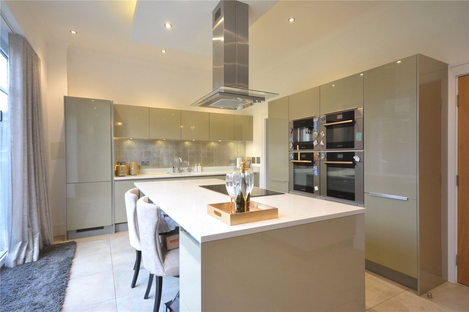 The ground floor offers a separate lounge, open plan living kitchen room with integrated appliances, large island, separate utility area and bifold doors leading to the private garden, in addition there is a second separate reception room.