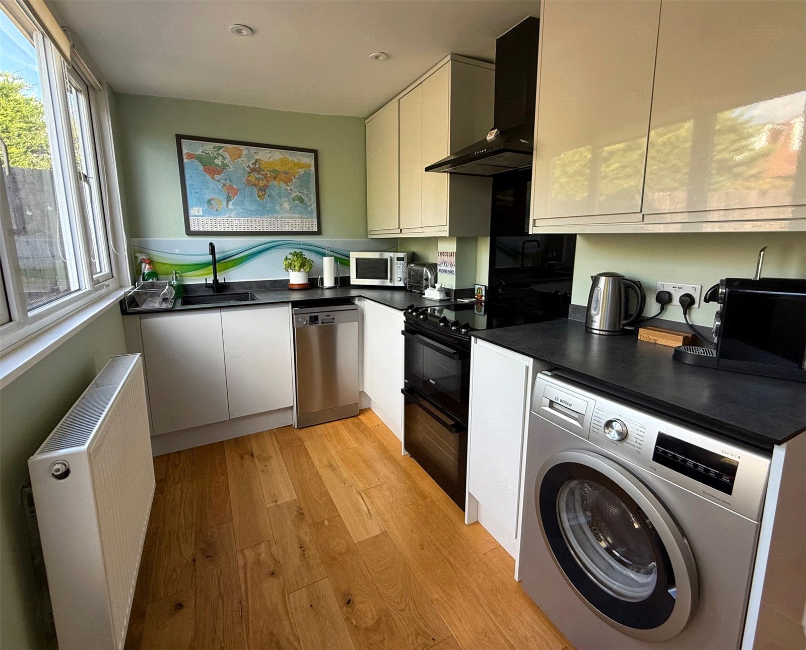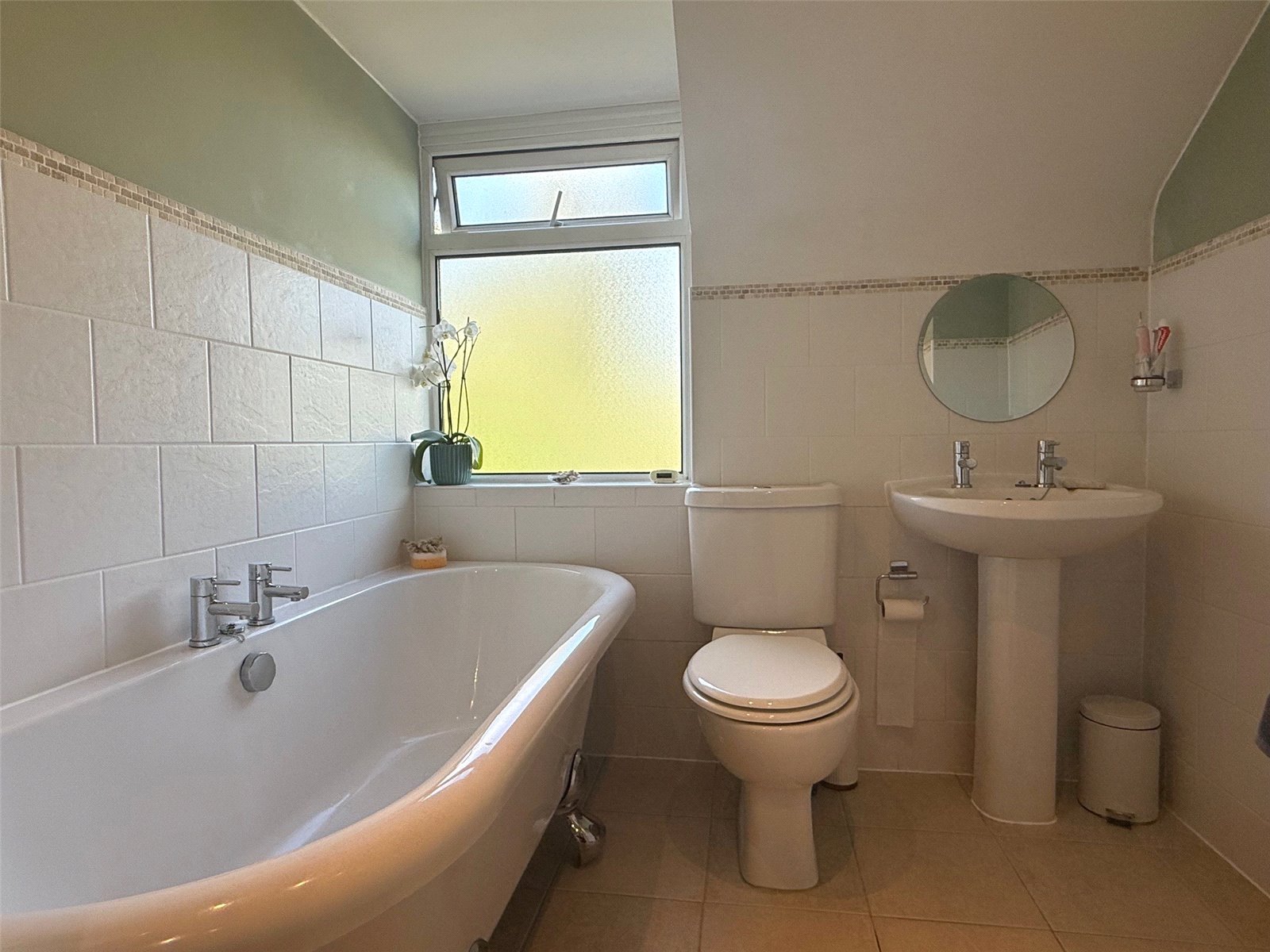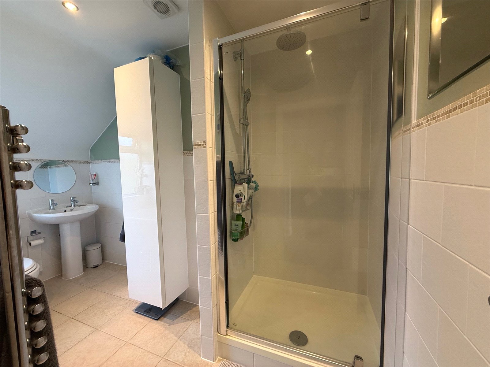 The first floor boasts two double bedrooms both with built in wardrobe storage and a family bathroom boasting separate walk in shower and free standing bath.