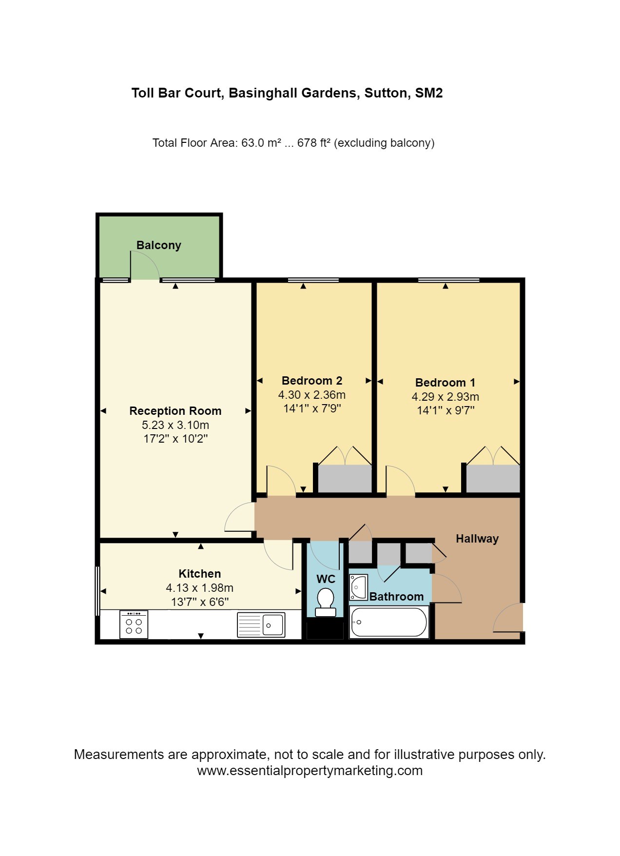 A well presented two double bedroom purpose built flat, situated on the 10th floor with two lifts. Conveniently situated within easy reach of buses to central Sutton and 0.7 of a mile walk to Sutton railway station. The property has been recently re-decorated and has its own balcony off the lounge. Parking within the block is available on a first come basis with additional parking on the street adjacent. EPC Rating: ELounge