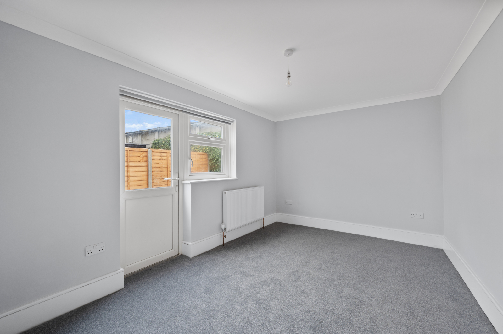 A newly refurbished ground floor flat with private outside garden. Welcomed with a living room, leading through to a large kitchen with integrated appliances and a bar area. (no washing machine included). Leading through to a single bedroom and the bathroom with shower with bath. To the rear is the double bedroom and doors leading to a private patio garden.