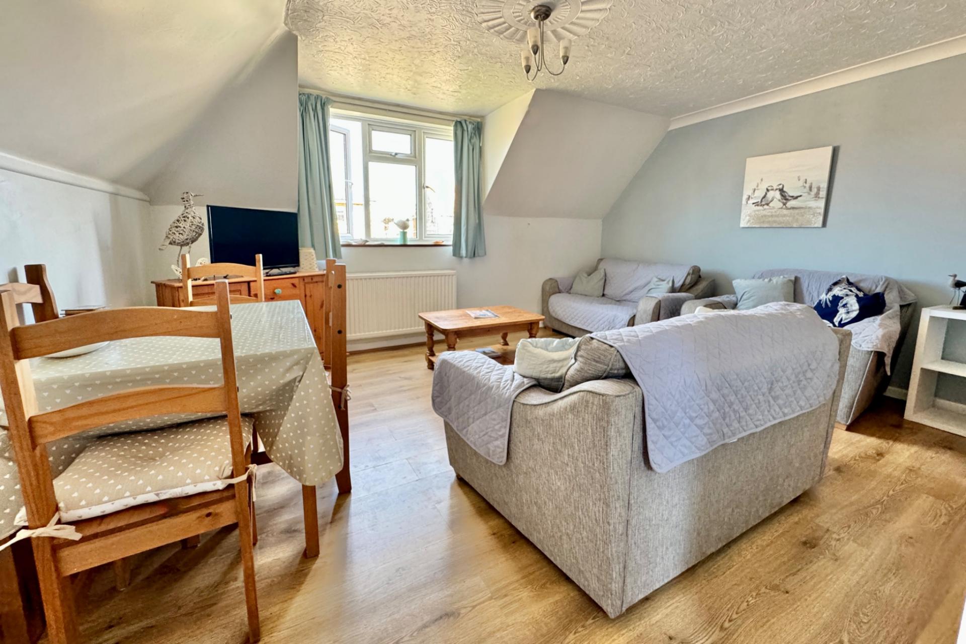 Modern second floor flat in the heart of the town centre, within easy reach of the seafront and beach. Living Room, Kitc...