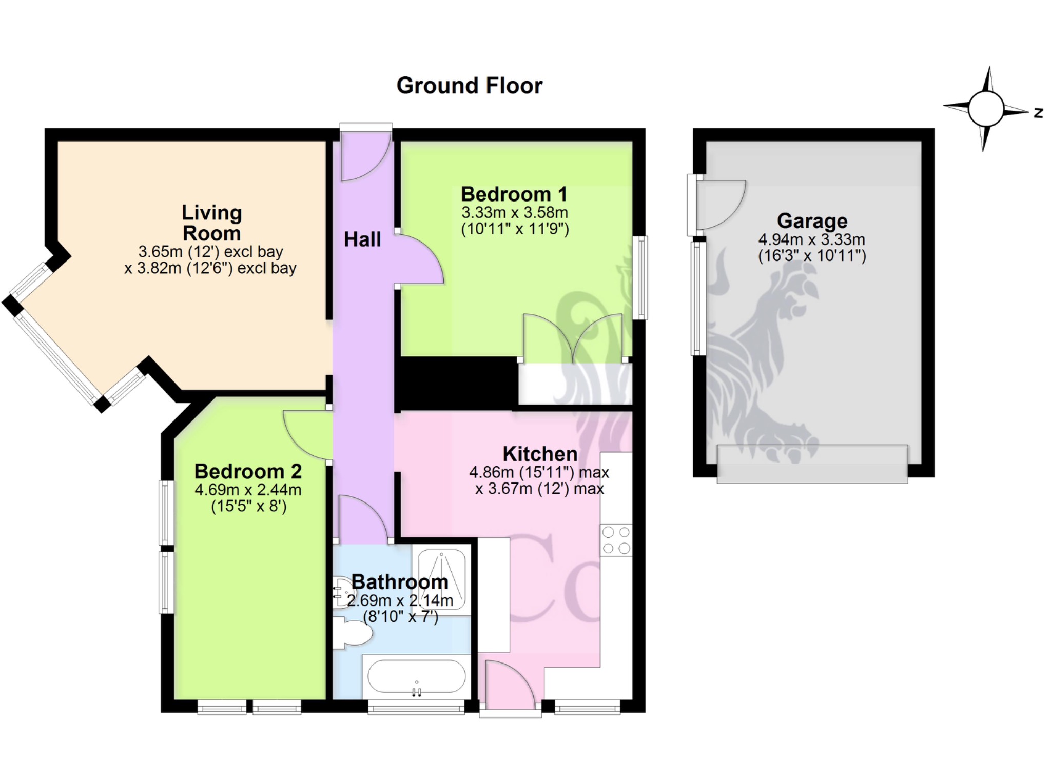 BEDROOM 2 4.69m x 2.44m (15’5” x 8’), South & East.