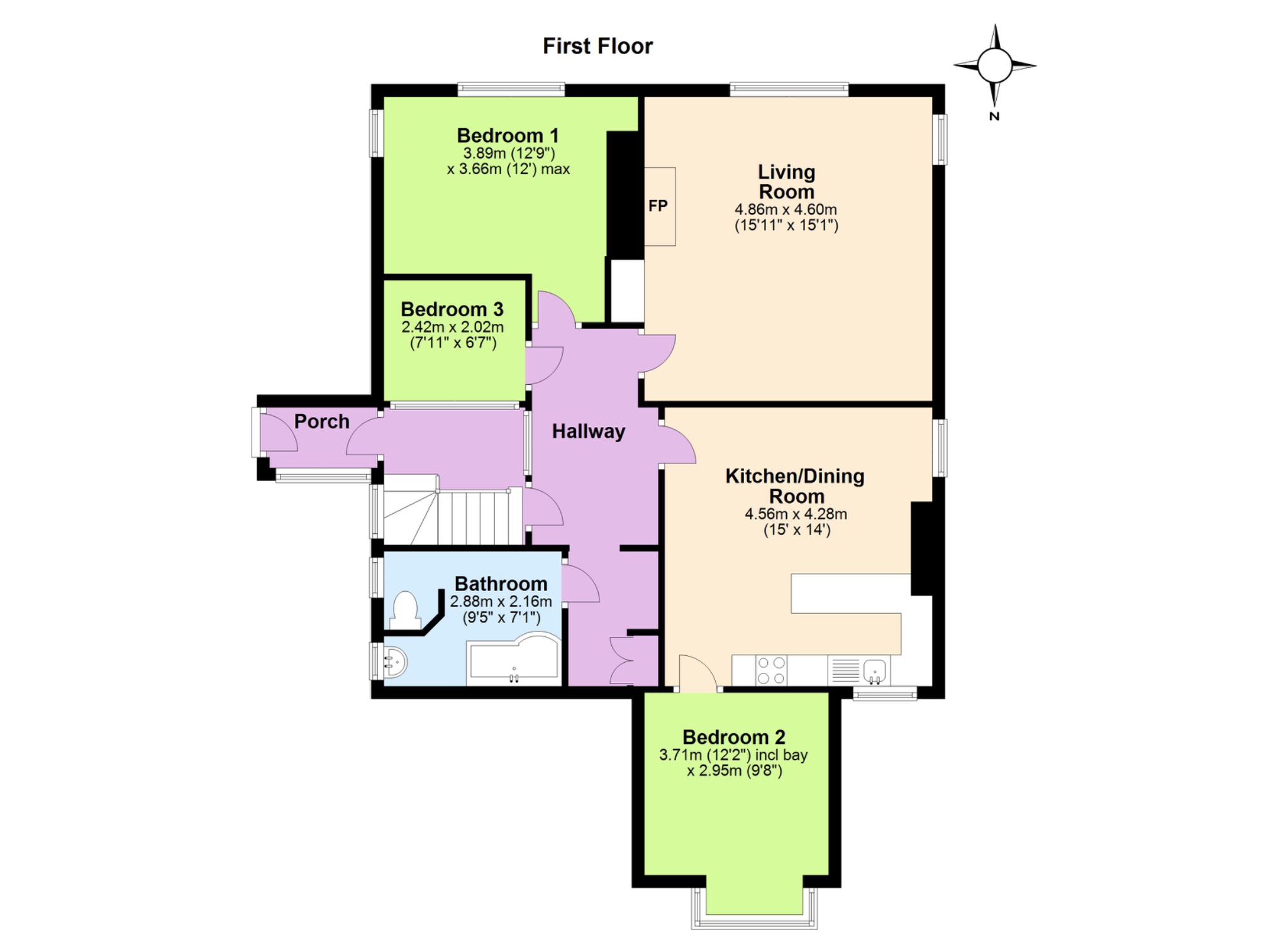 BEDROOM 1 3.89m x 3.66m max (12’9” x 12’), South & East.