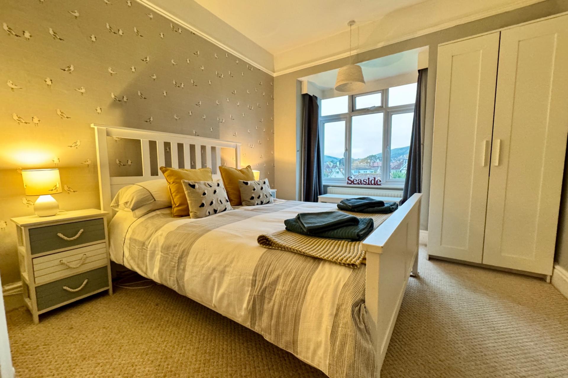 BEDROOM 2 3.71m including bay x 2.95m max (12’2” including bay x 9’8”), North, views across the Purbeck Hills.