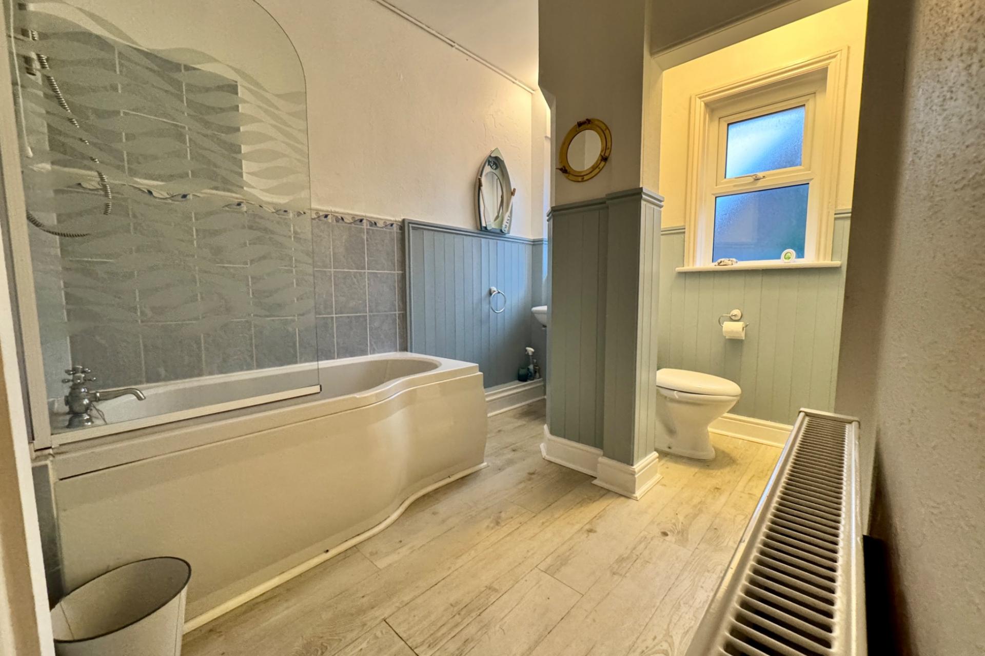 BATHROOM 2.88m x 2.16m (9’5” x 7’1”), Modern suite comprising bath with shower over, wash basin and WC.