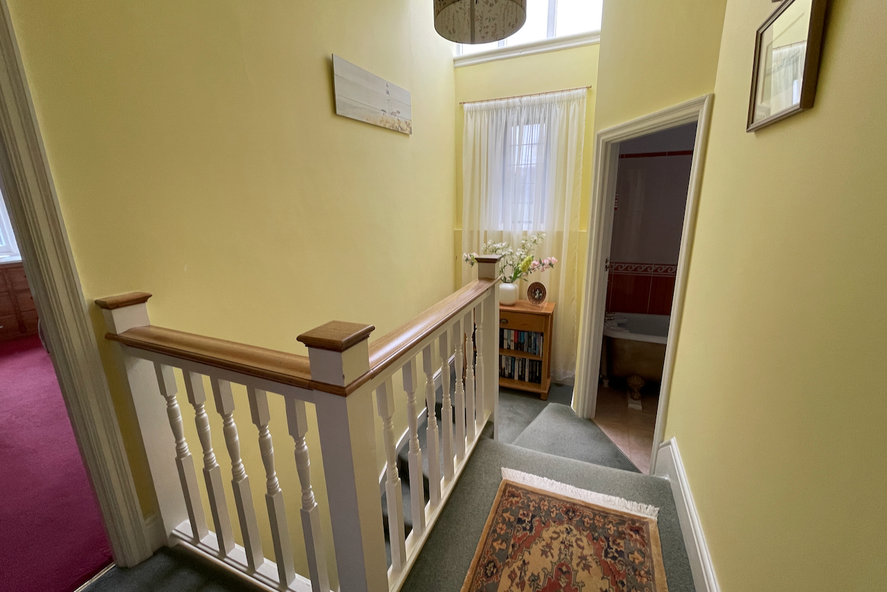 ENTRANCE HALL South, staircase to first floor with storage cupboard under, staircase to lower ground floor.