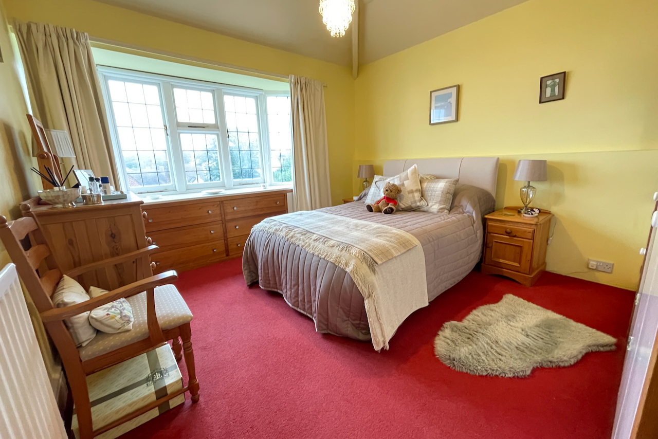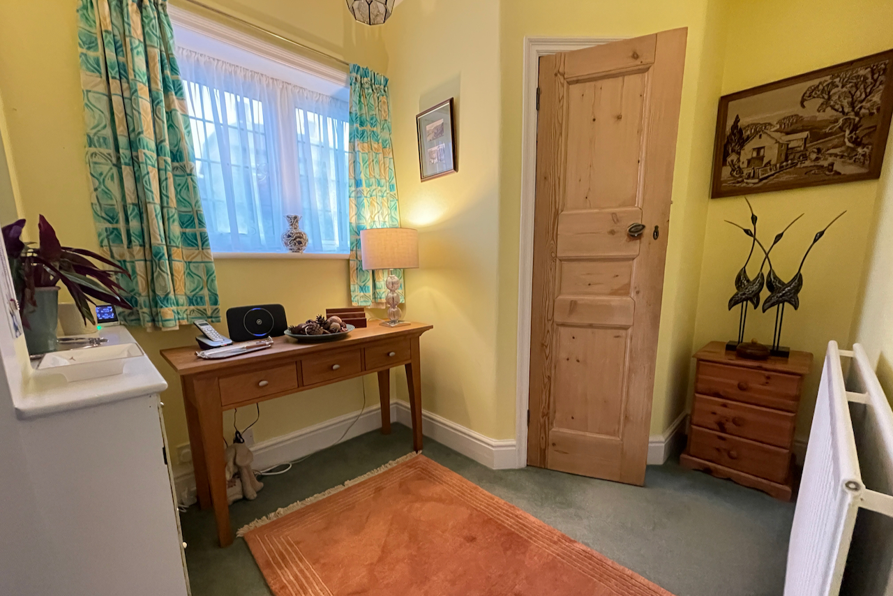 BEDROOM 3 3.51m x 3.16m (11’6” x 10’4”), East, similar views to Bedroom 1, fitted wardrobes, washbasin with vanity unit under, window seat with drawers under.