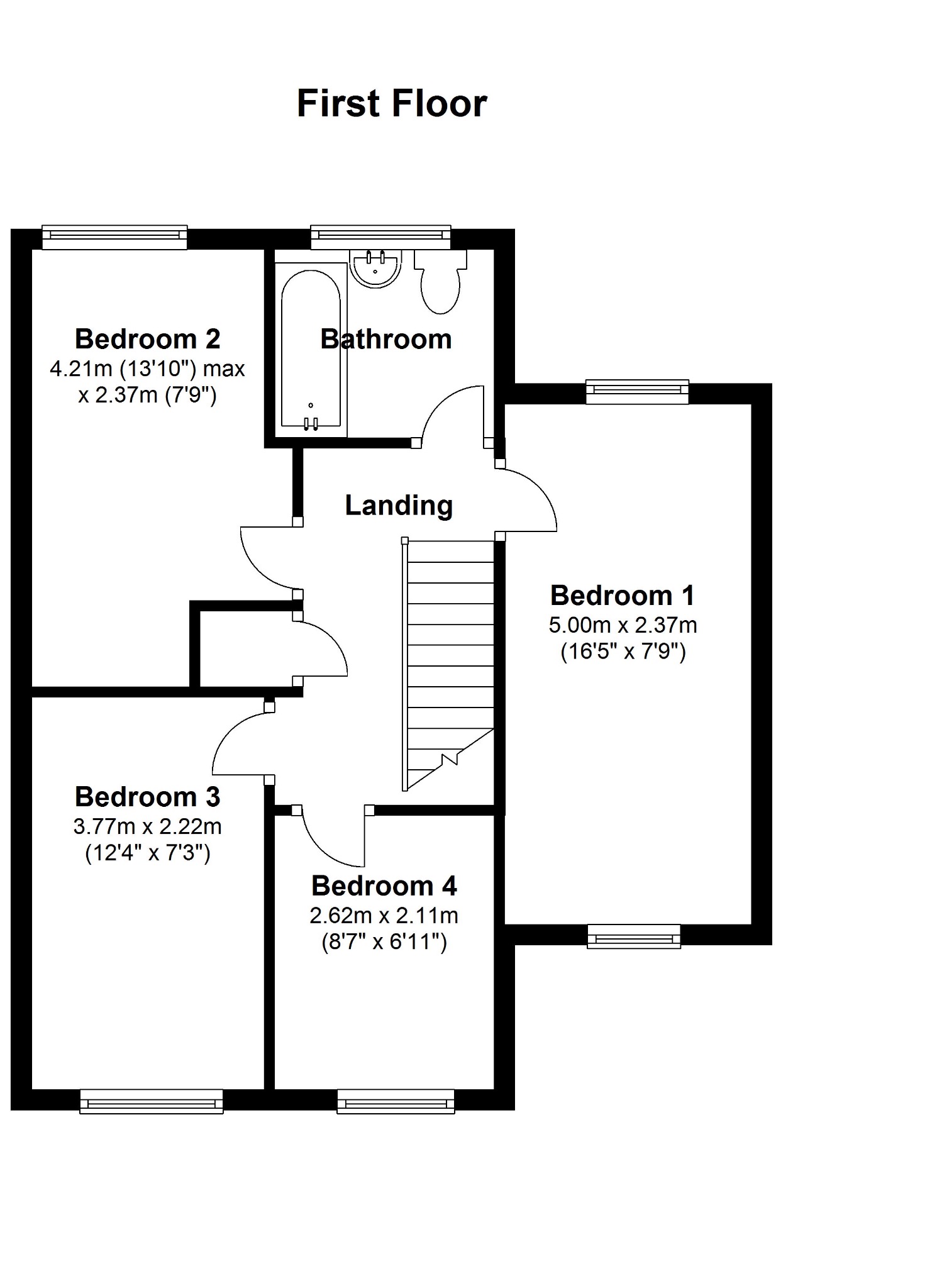 BEDROOM 4 2.62m x 2.12m (6’5” x 5’8”), South.