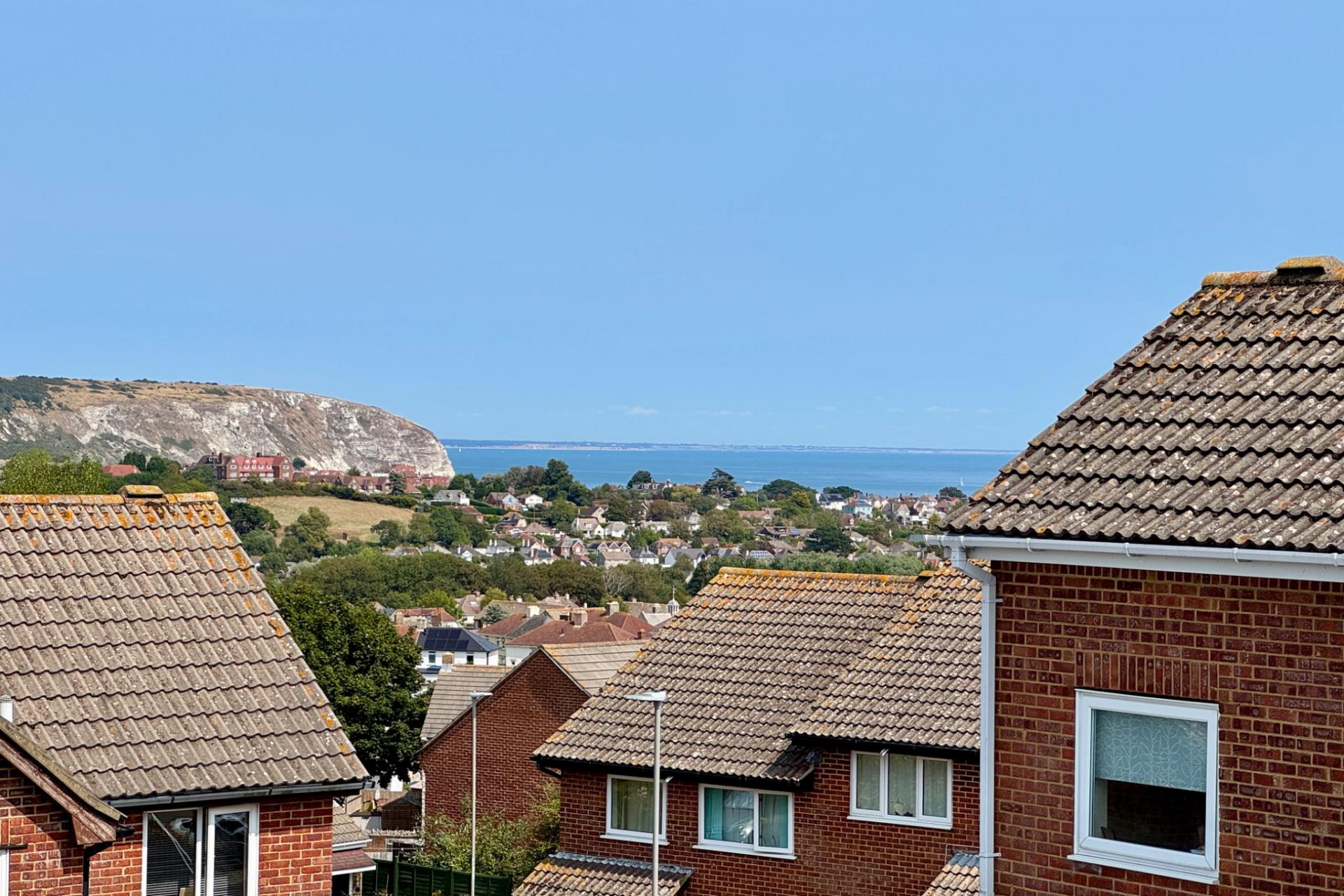 BEDROOM 1 5m x 2.37m (16’4” x 7’9”), South & North, views over Swanage to the Purbeck Hills and bay in the distance.