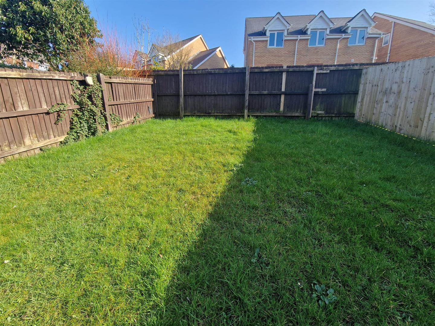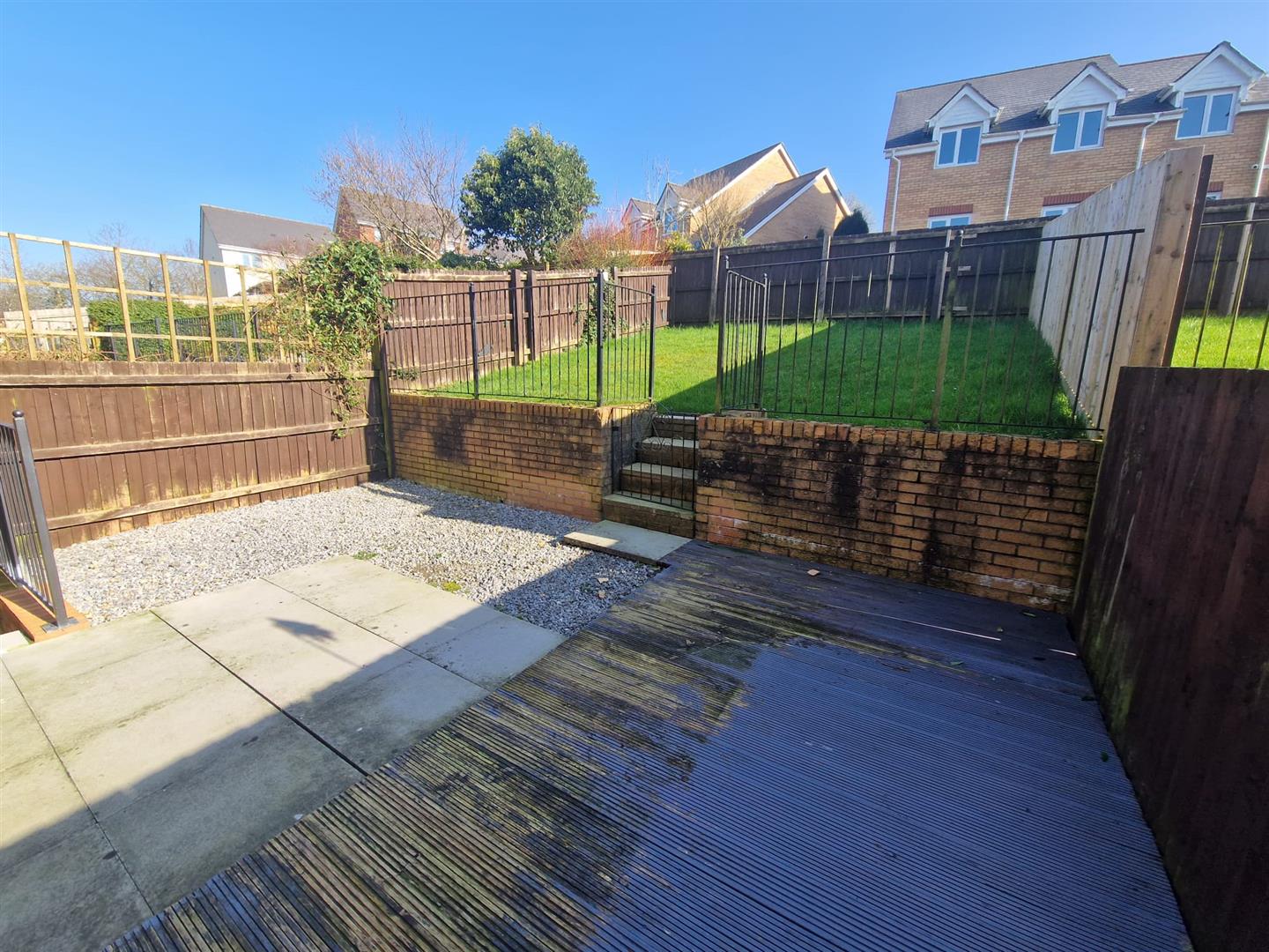 .Outdoor Retreat: An enclosed rear garden offering a paved patio for alfresco dining and an elevated lawn.