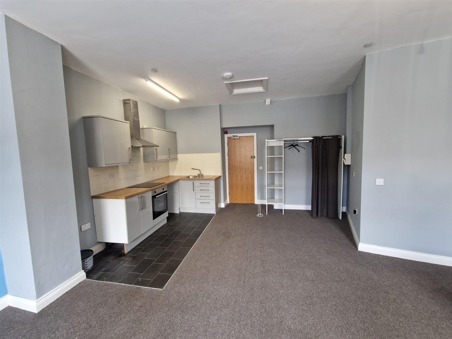 Located on the First Floor this Studio Apartment is Part Furnished with a combined Living Room/Bedroom/Fitted Kitchen and a Seperate Bathroom with Over Bath Shower. The Kitchen area has an Integrated Oven and Hob as well as being plumbed for Washing Machine.