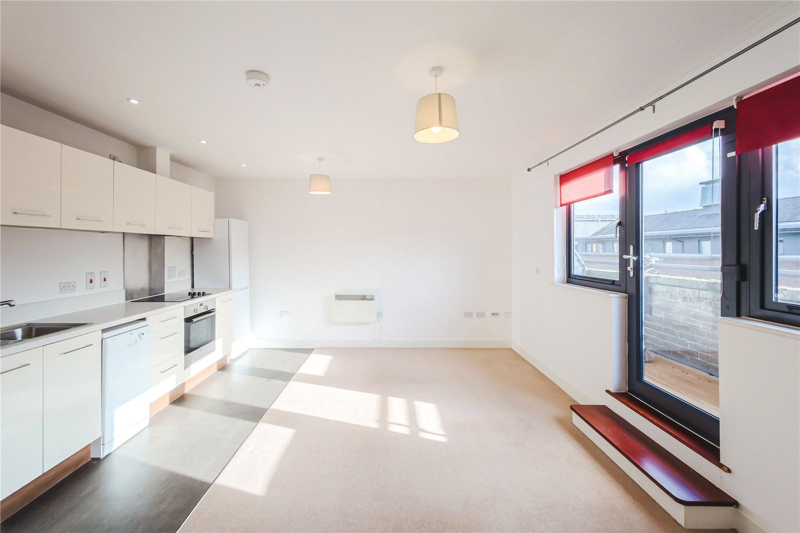 The property provides excellent access to amenities such as the Designer Outlet Village and boasts impressive views of the local area on the balcony. It is within a short walk to both the town centre and the railway station. The accommodation comprises a secure communal hall with an intercom entry system and stairs rising to floors. The property includes a living room with a door opening onto the balcony, a modern fitted kitchen, two double bedrooms and a modern fitted bathroom with white three-piece suites. Further features include a covered allocated parking space.Please note that there is no lift.